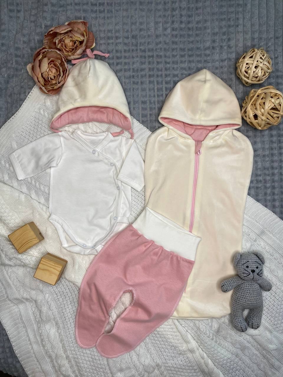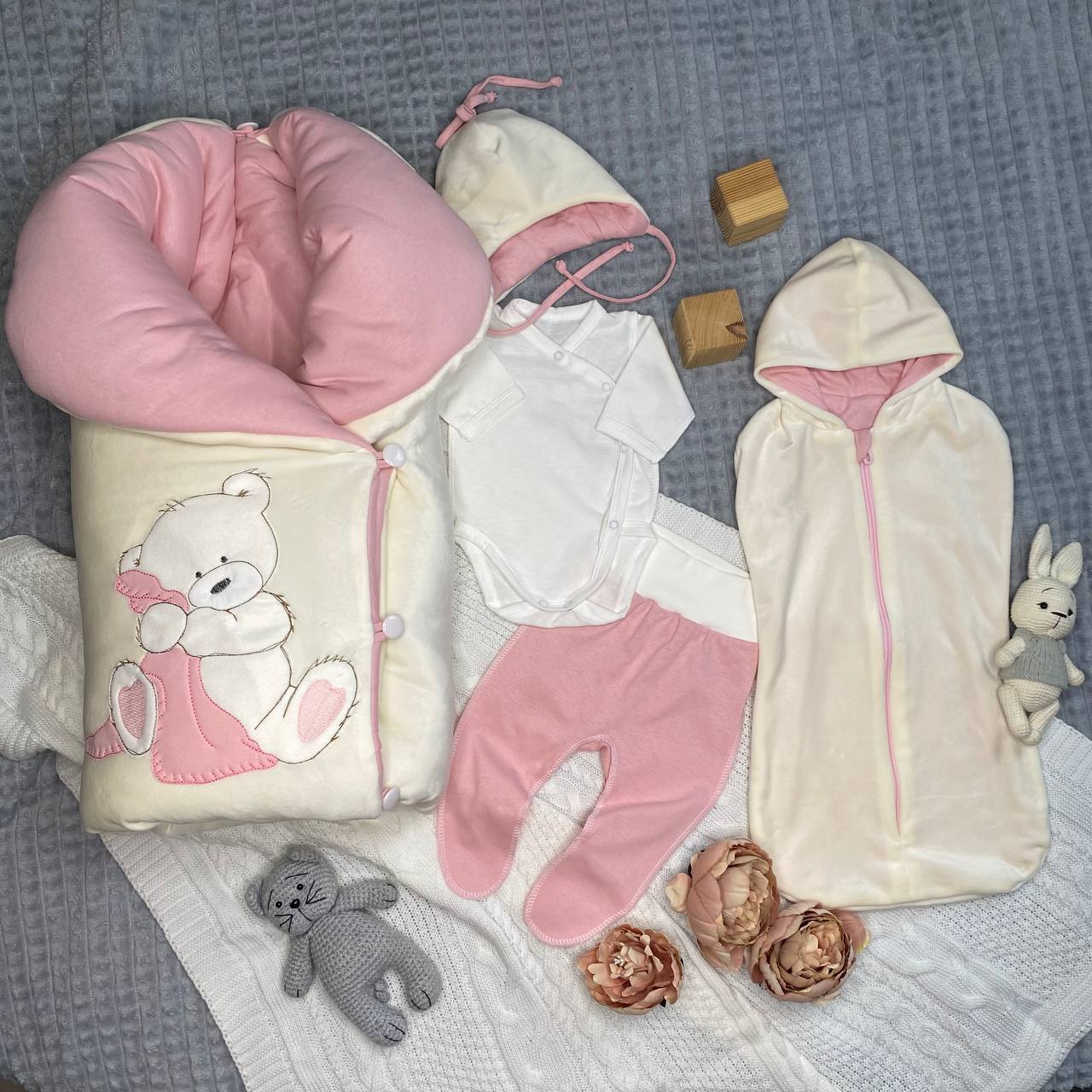 Комплект на выписку «Мишка-Малышка» розовый