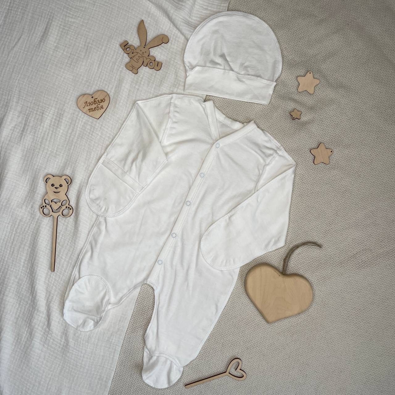 Комбинезон все швы наружу, на кнопках, хлопок 100% молочного цвета, р 56-36