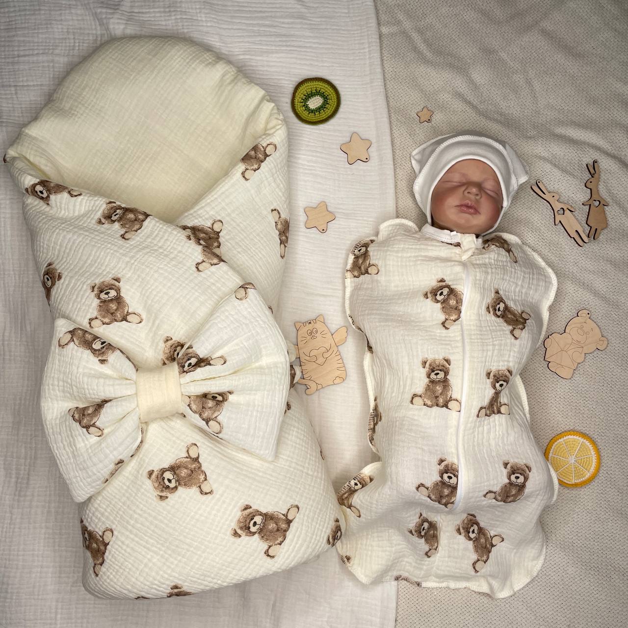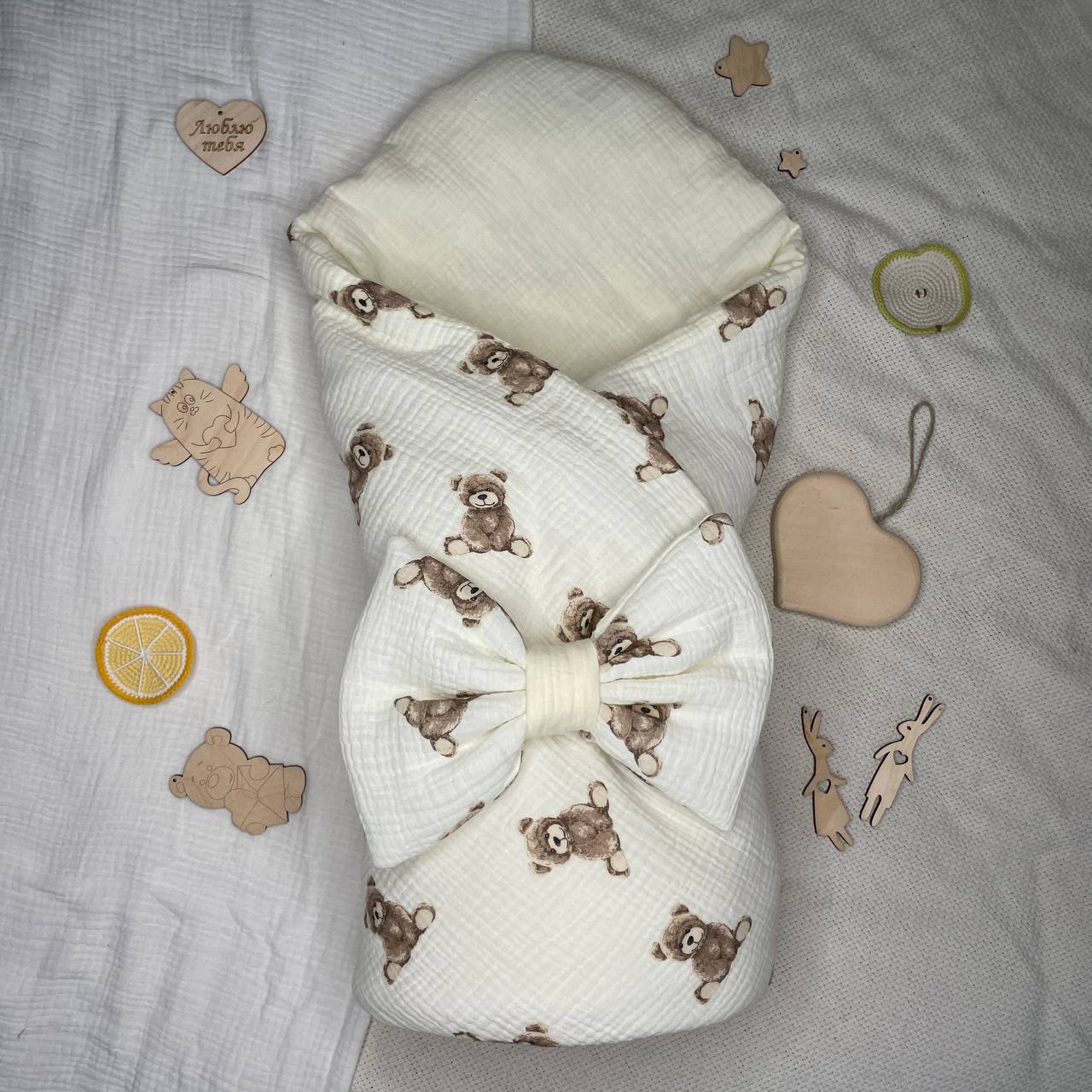 Пеленка-кокон на молнии из муслина. Размер 0-3мес