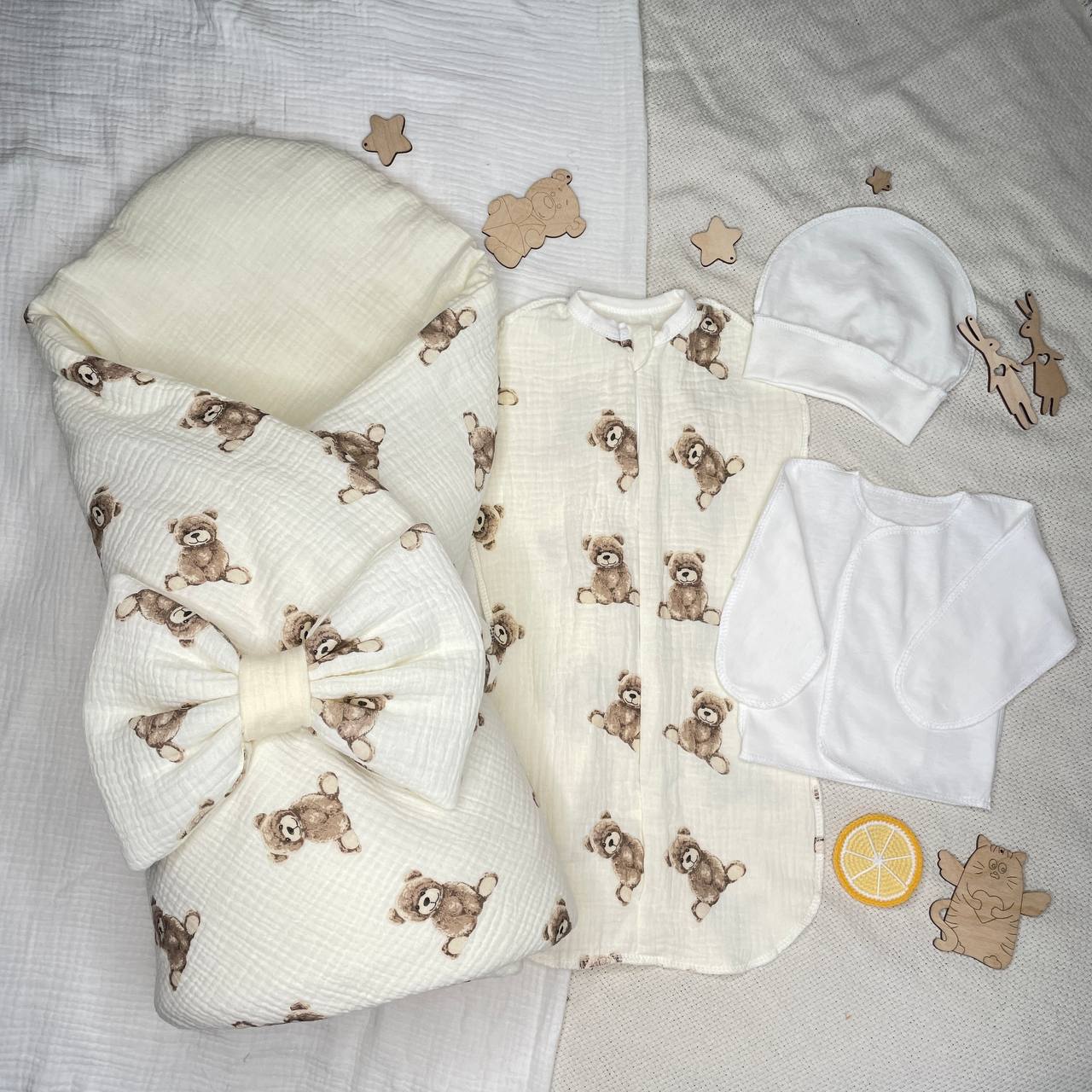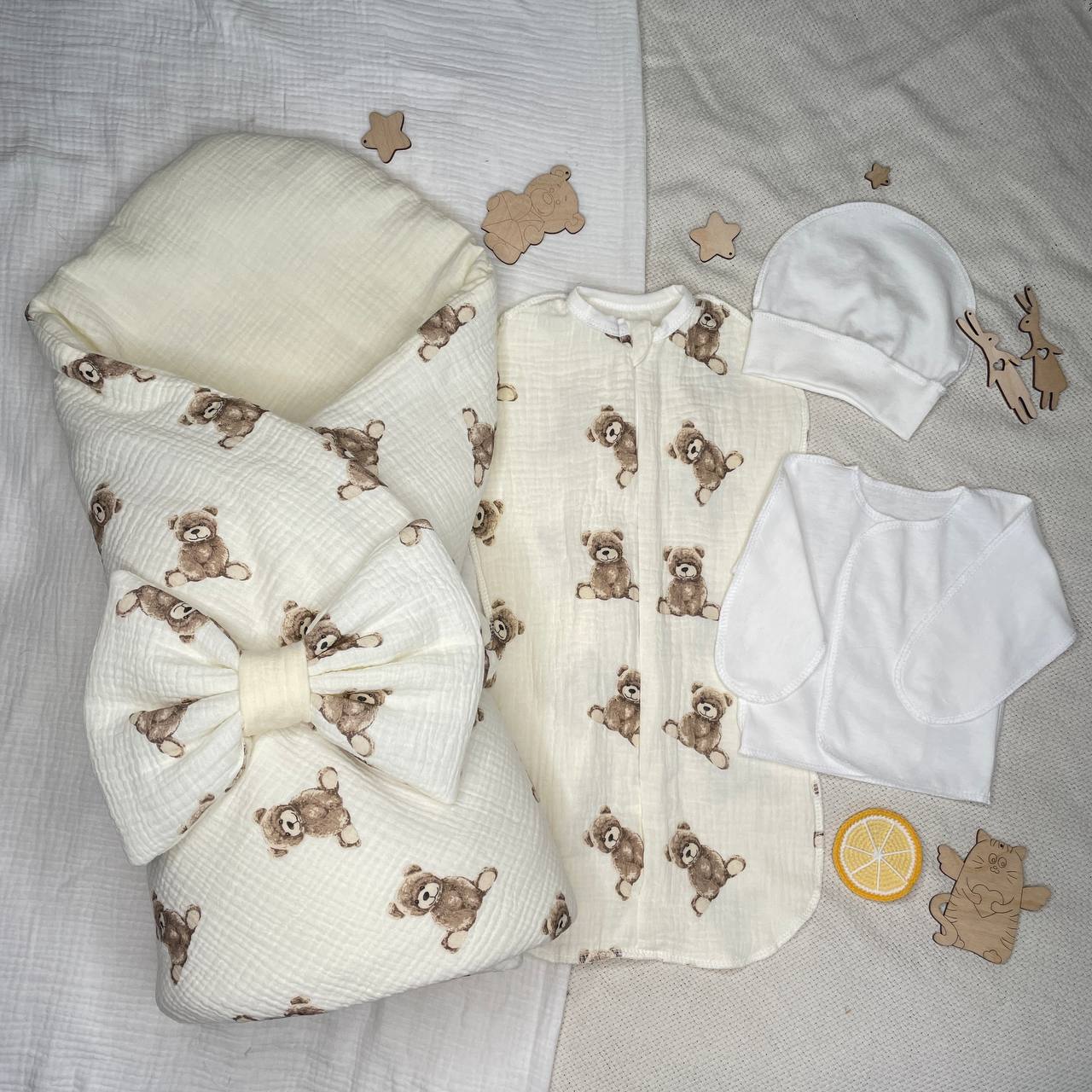 Арт. 465 Комплект на выписку Шоколадный Мишка, муслин