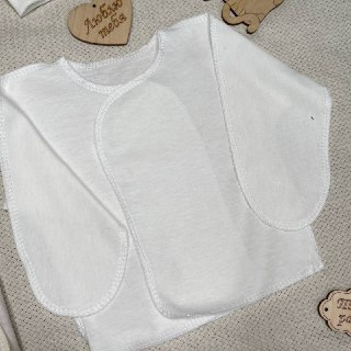 Распашонка швы наружу, ручки закрыты молочного цвета. Размер на рост 56см