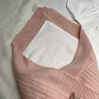 1. Вязаный плед с хлопковым подкладом. Одеяло-конверт, на одной пуговице, трансформирующееся в одеяло. Размер 90-90 см +,-5см Состав вязки: акрил-30%, хлопок 60%