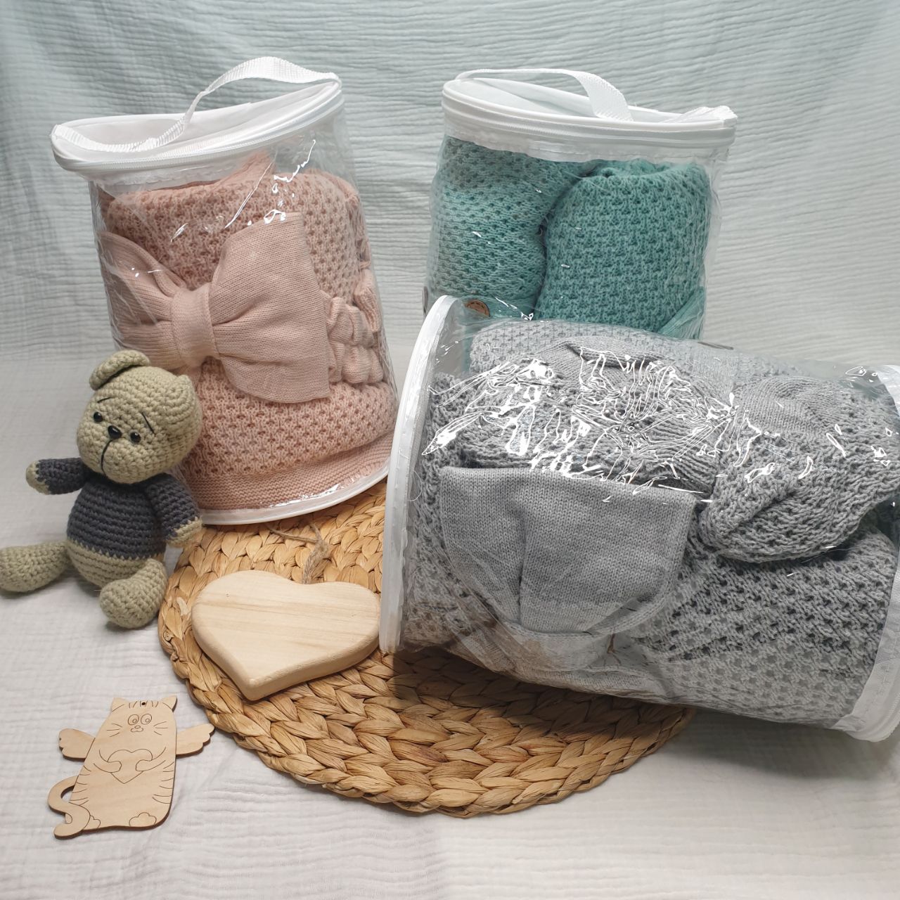 1. Одеяло вязаное, р-р 90*90 (+-5 см);