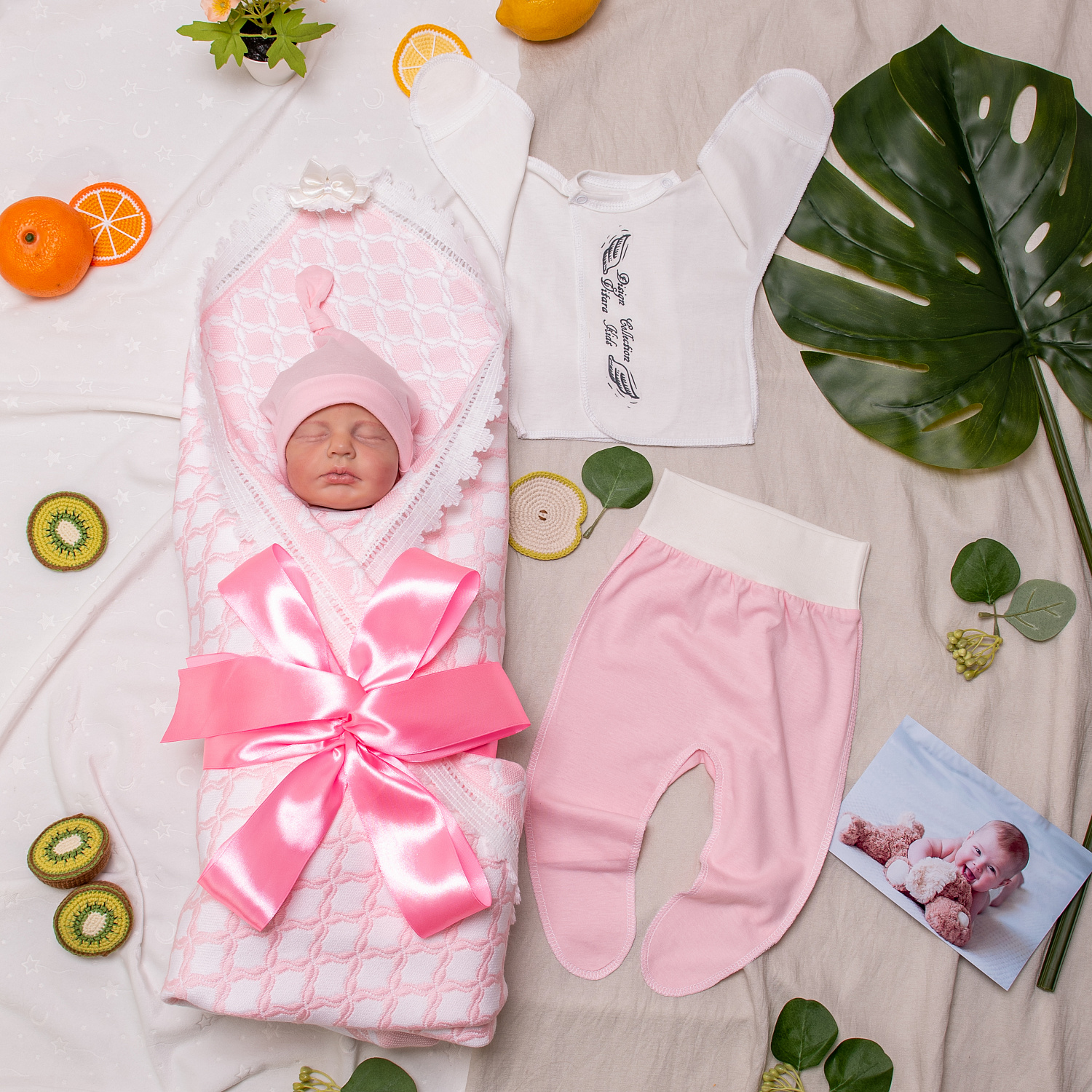 Арт. 391 Комплект на выписку "Swan Song", розовый, летний