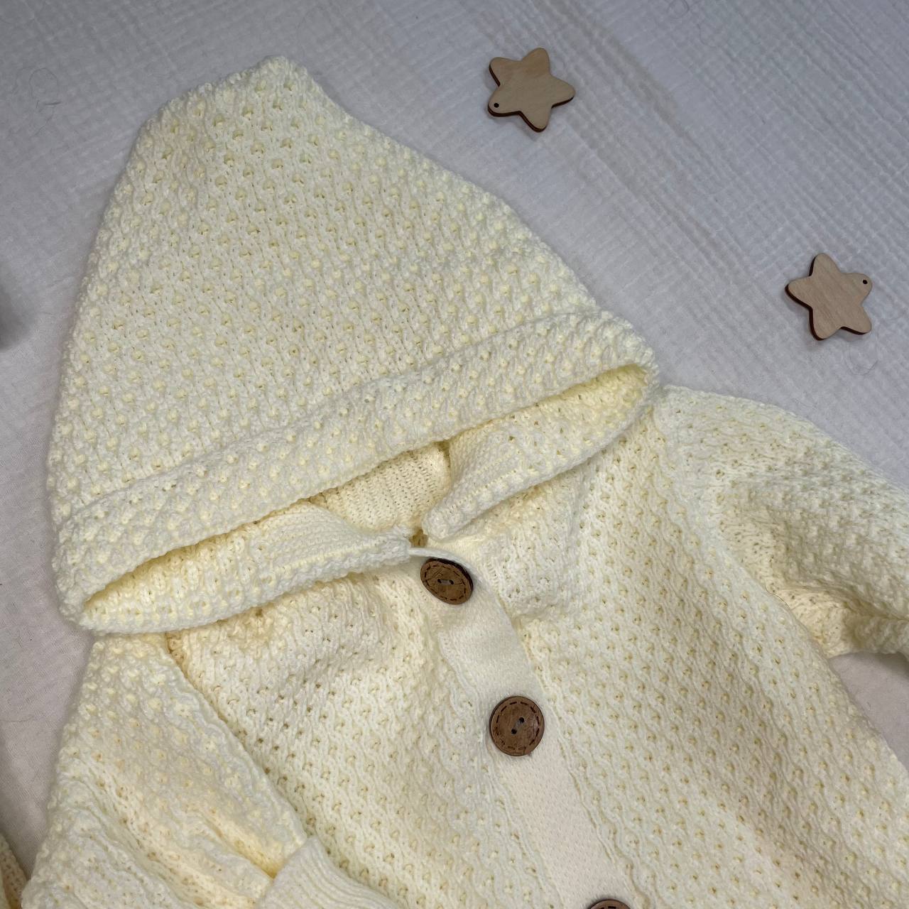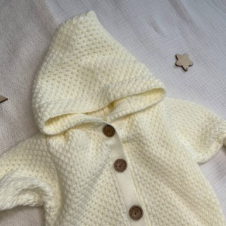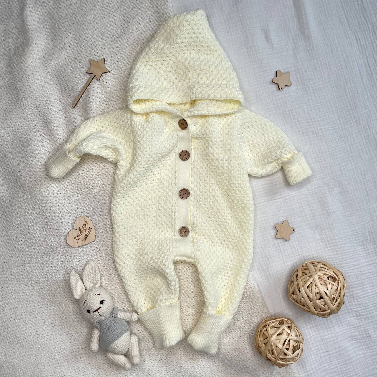 2.Комбинезон вязаный с капюшоном . На деревянных пуговицах, растущие манжеты. р-р 56/62