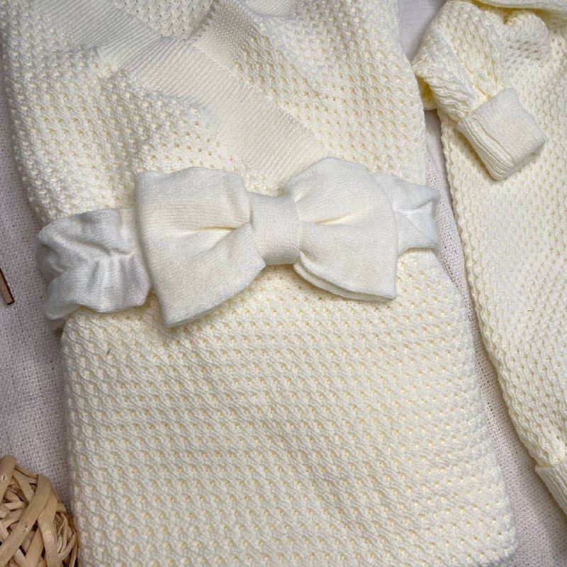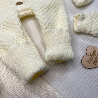 КВ-102 Вязаный комплект на выписку в бежевом цвете. Упакован в тубус.