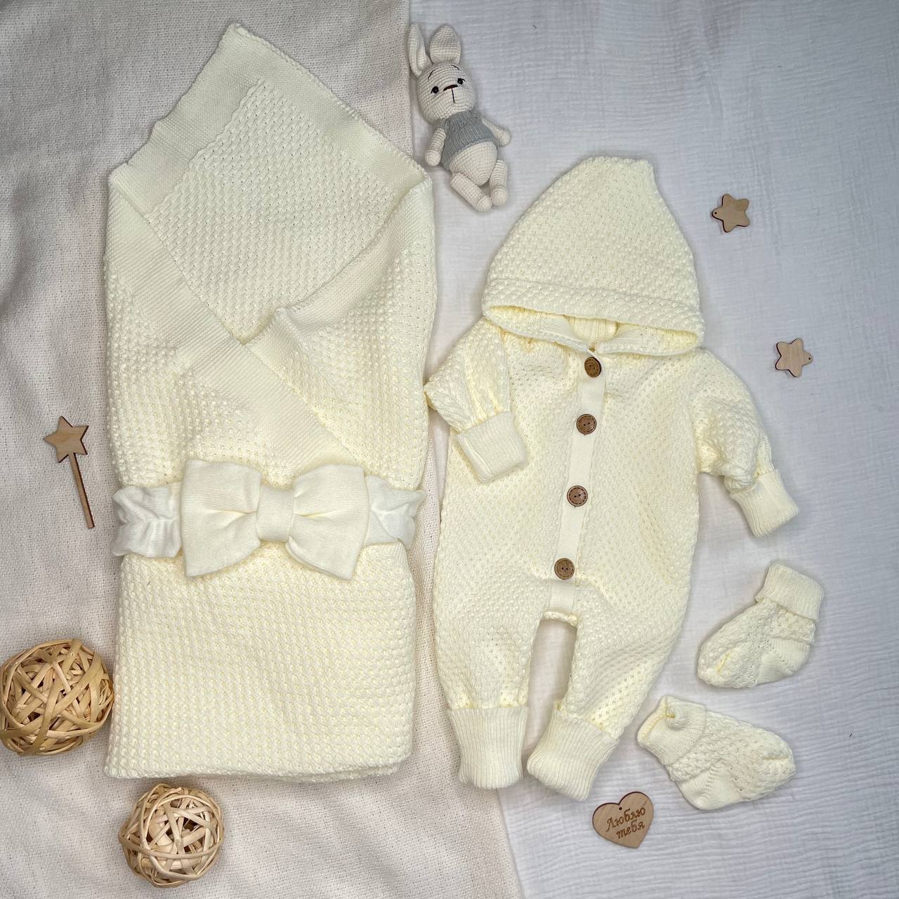 КВ-102 Вязанный комплект на выписку. молочный