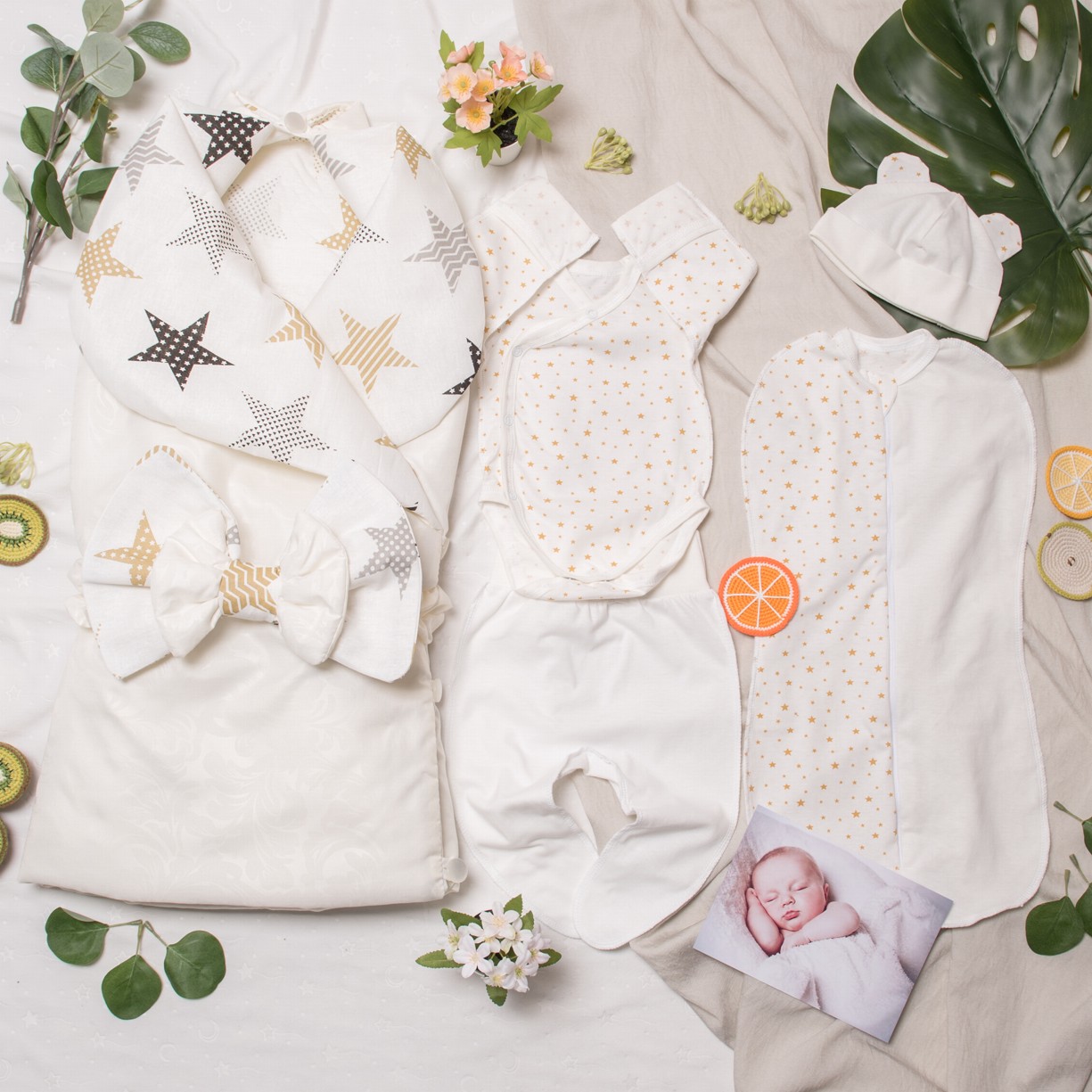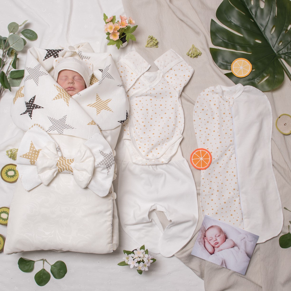 Яркий, «звёздный» комплект на выписку с полным гардеробом для новорожденного!