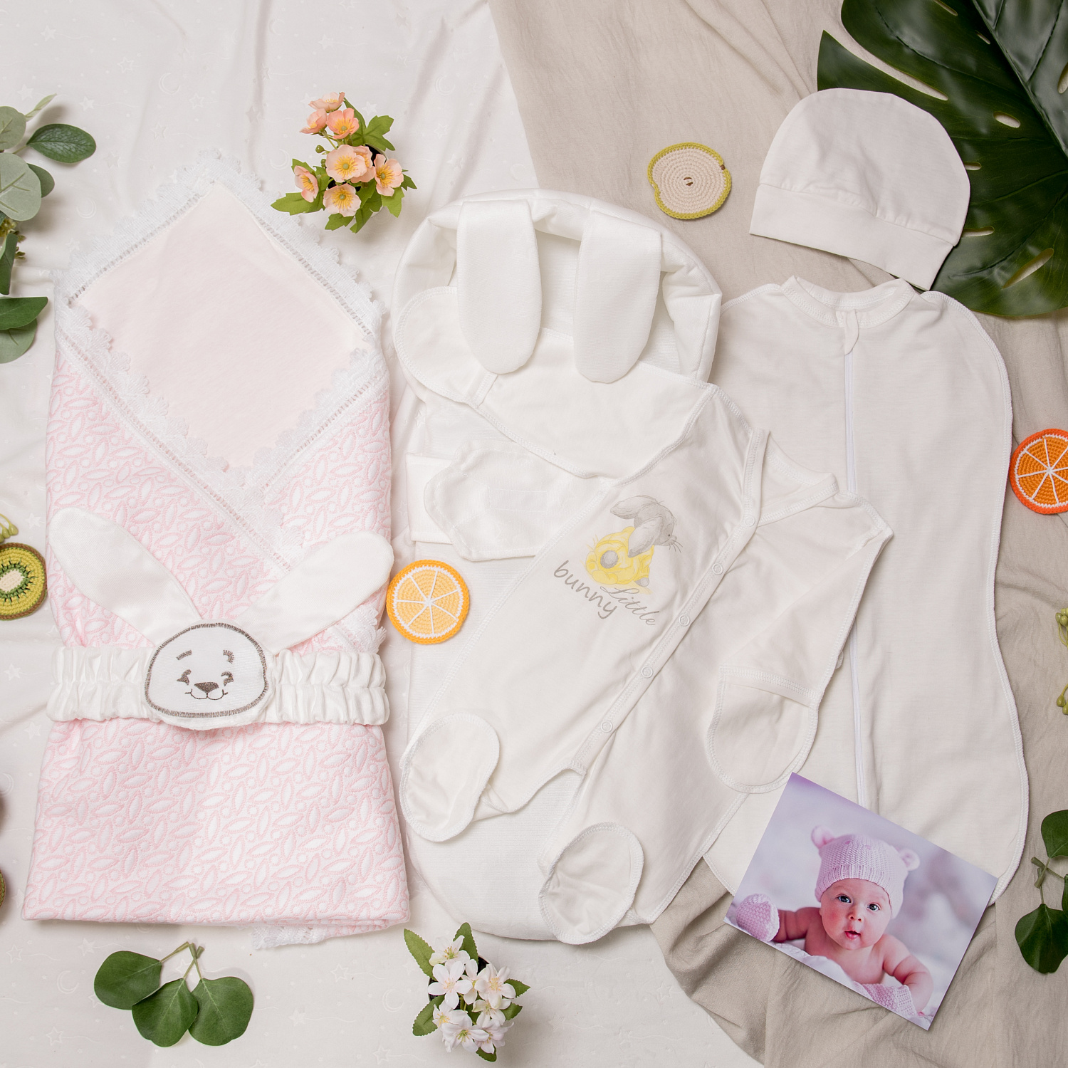 Арт. 103 Комплект на выписку «Sweet Rabbit», розовый, летний