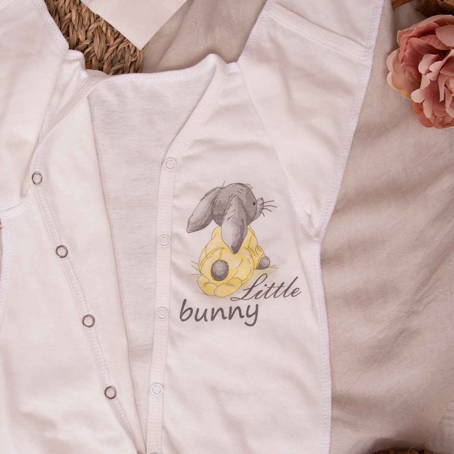 Комбинезон-слип на кнопках для новорожденных и малышей для первых месяцев жизни, с принтом "Зайка" создаёт настроение, малыши на фото получаются особенно милыми.Такой слип лучше всего подходит для выписки из роддома. Мягкий, лёгкий хлопковый кулирный трикотаж идеально подходит для нежной кожи младенца. Все швы выполнены наружу, на рукавах предусмотрены отвороты-антицарапки. Кнопочки помогают быстро одеть-раздеть малыша.
