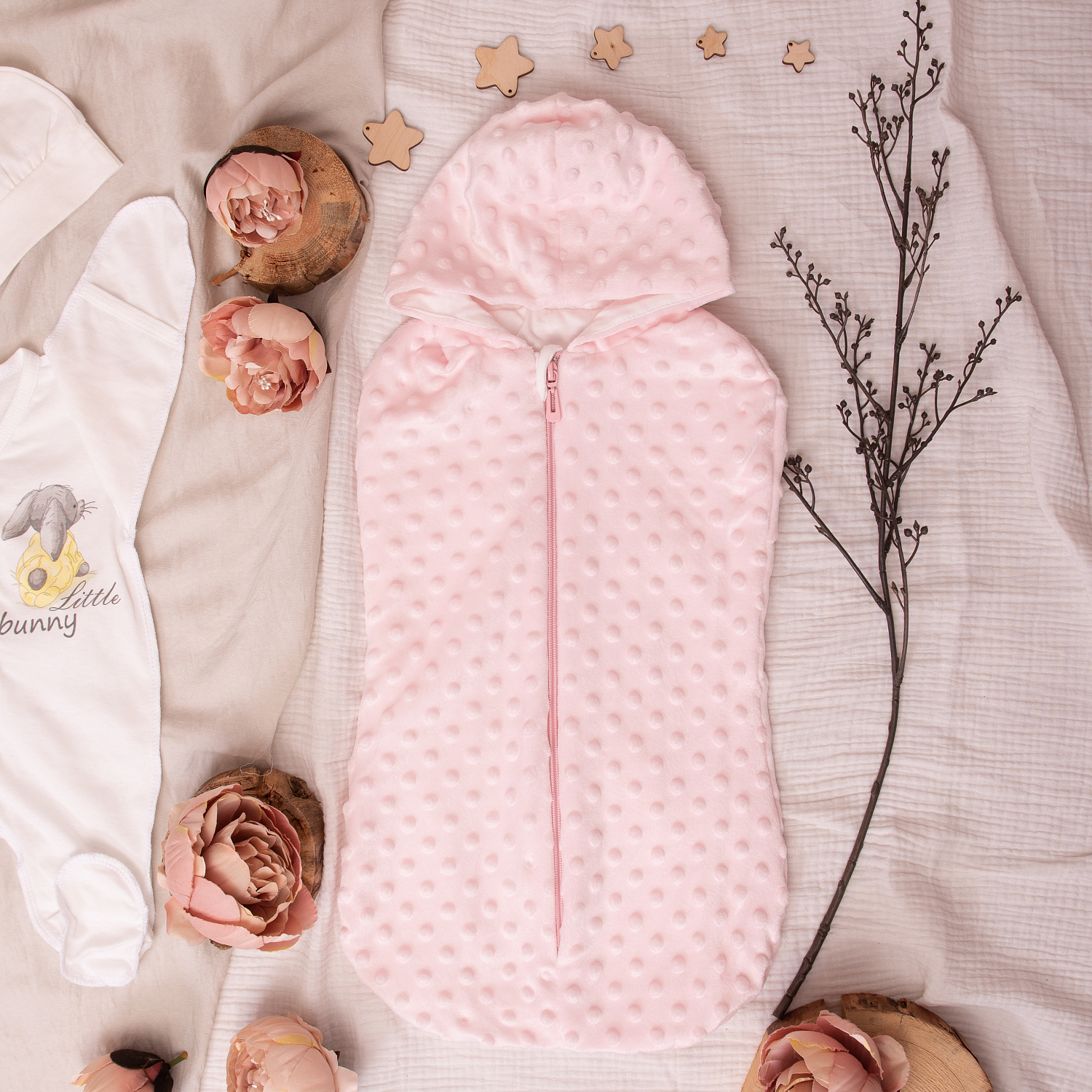 Кокон-пелёнка — это комфорт и спокойствие вашего малыша. Без проблем вы обеспечите своем ребенку комфортное пребывания во время сна или бодрствования, используя кокон. Пелёнка-кокон сшита из мягкого ворсового трикотажа вельбоа с забавной "пупырчатой" фактурой. Внутренний слой - 100% хлопковый кулирный трикотаж. Кокон с капюшоном, на длинной молнии, с защитным клапаном около подбородка, чтобы не прищемить малыша застёжкой.