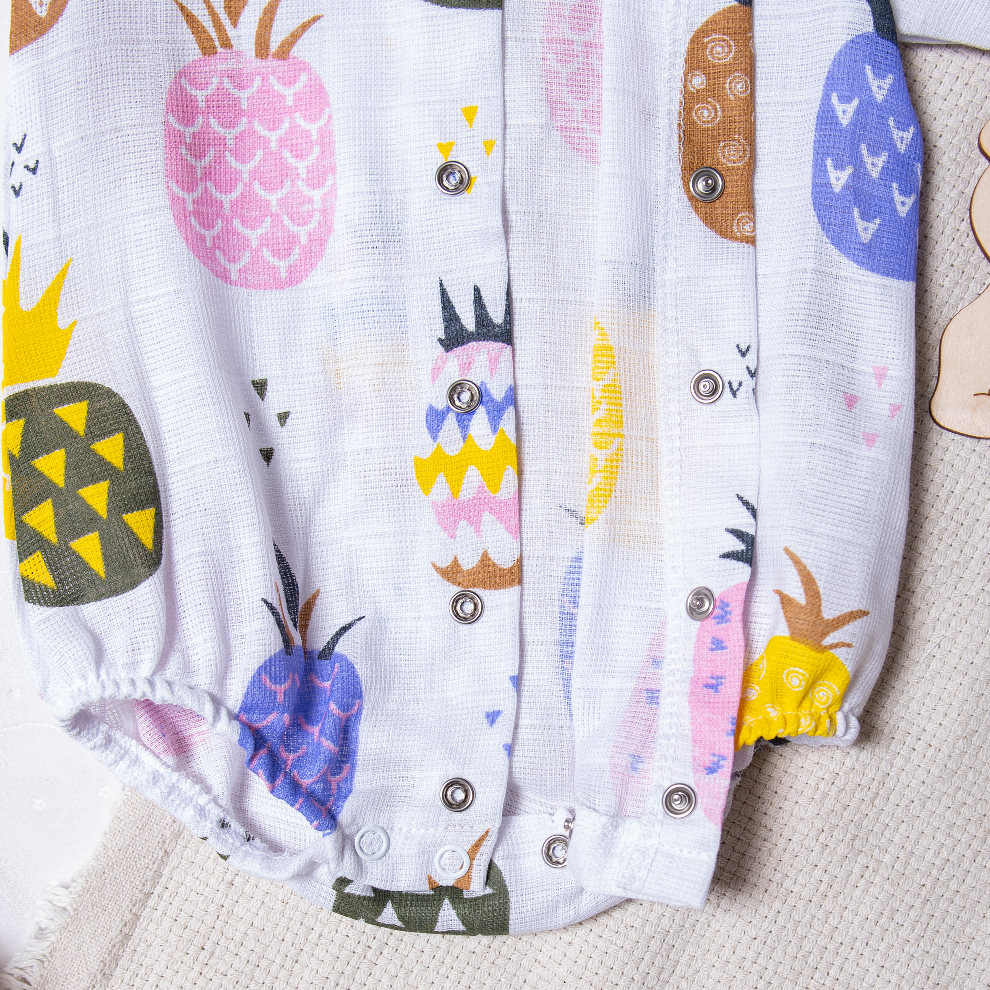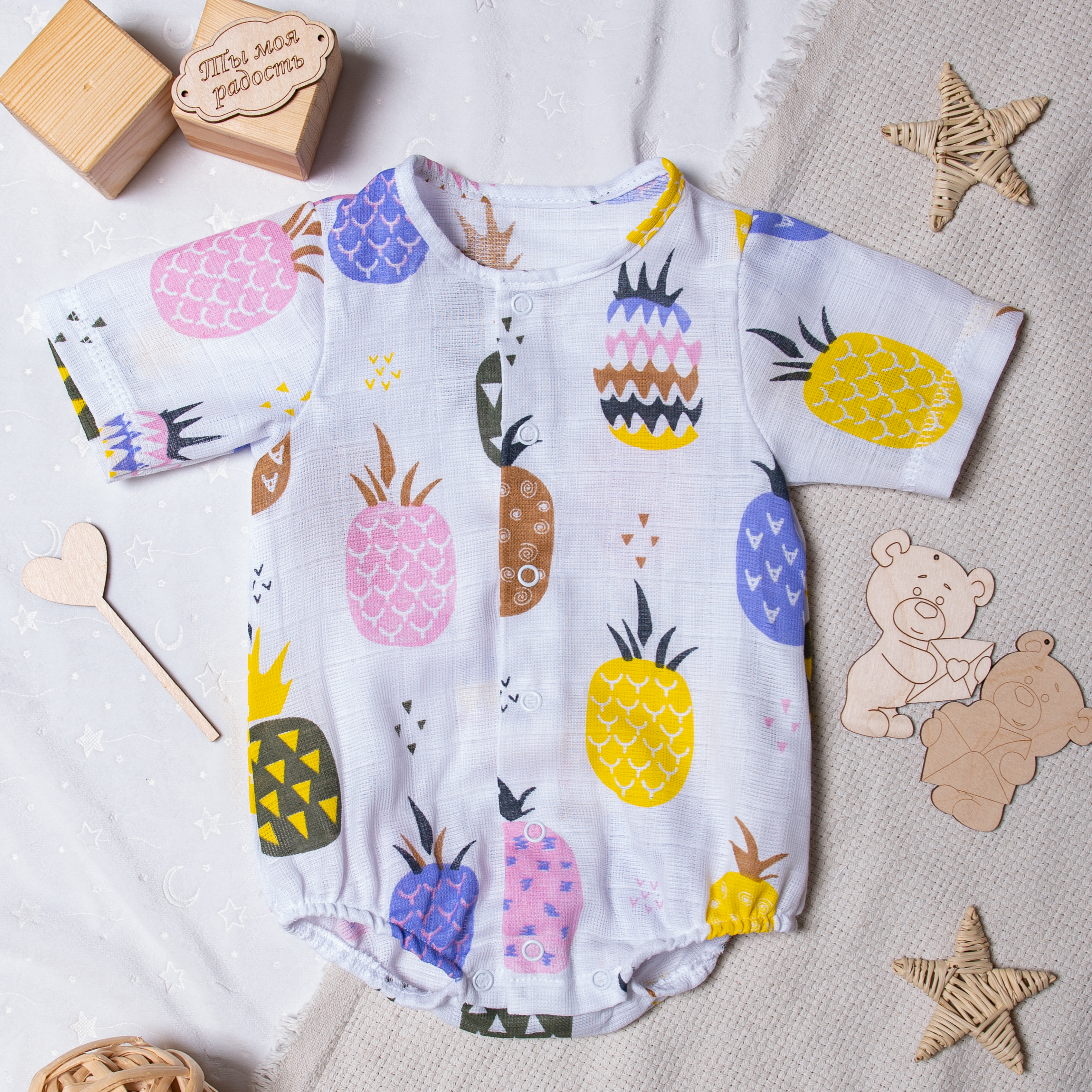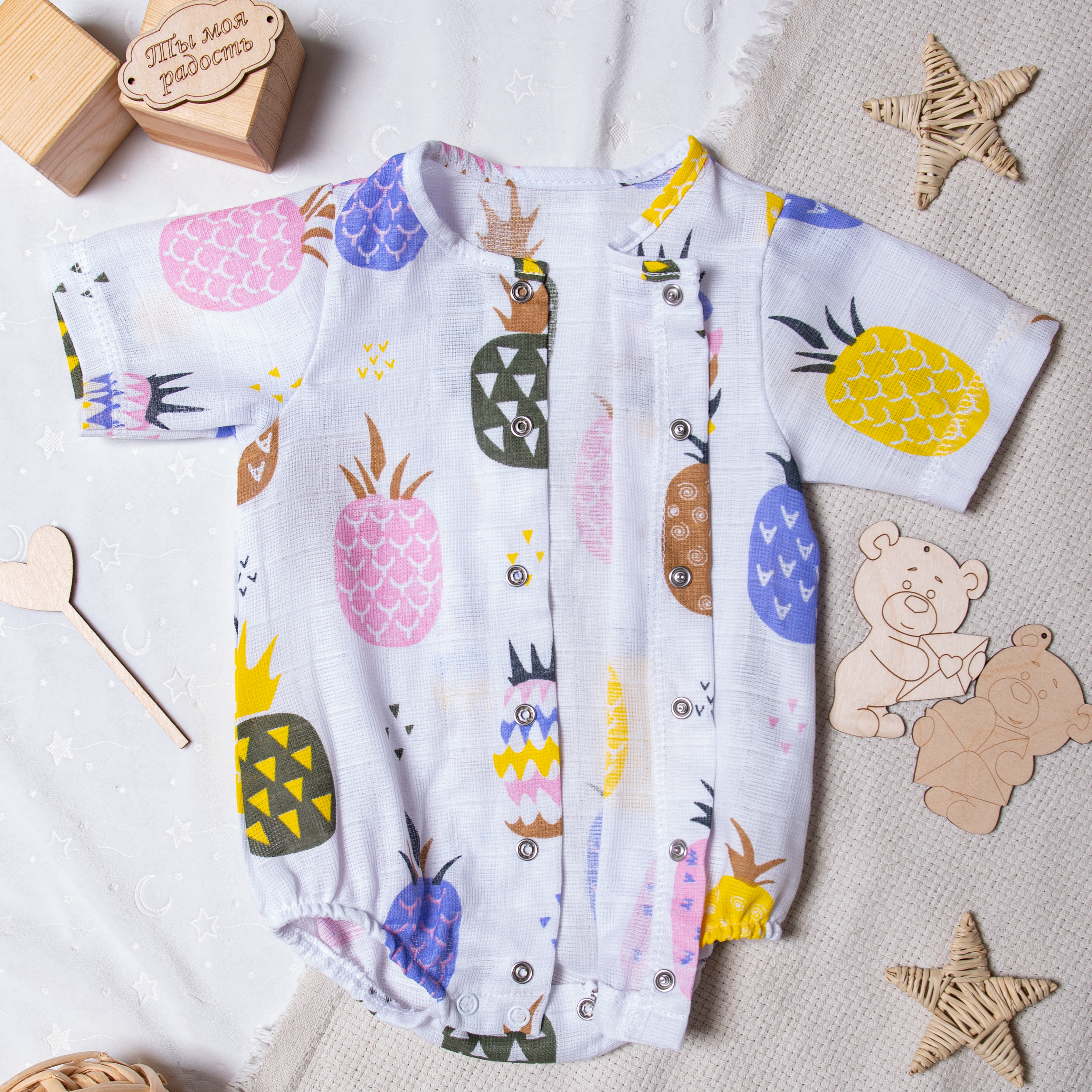 Легкие летние боди из трендового хлопкового муслина с набивным рисунком "Ананасы" .