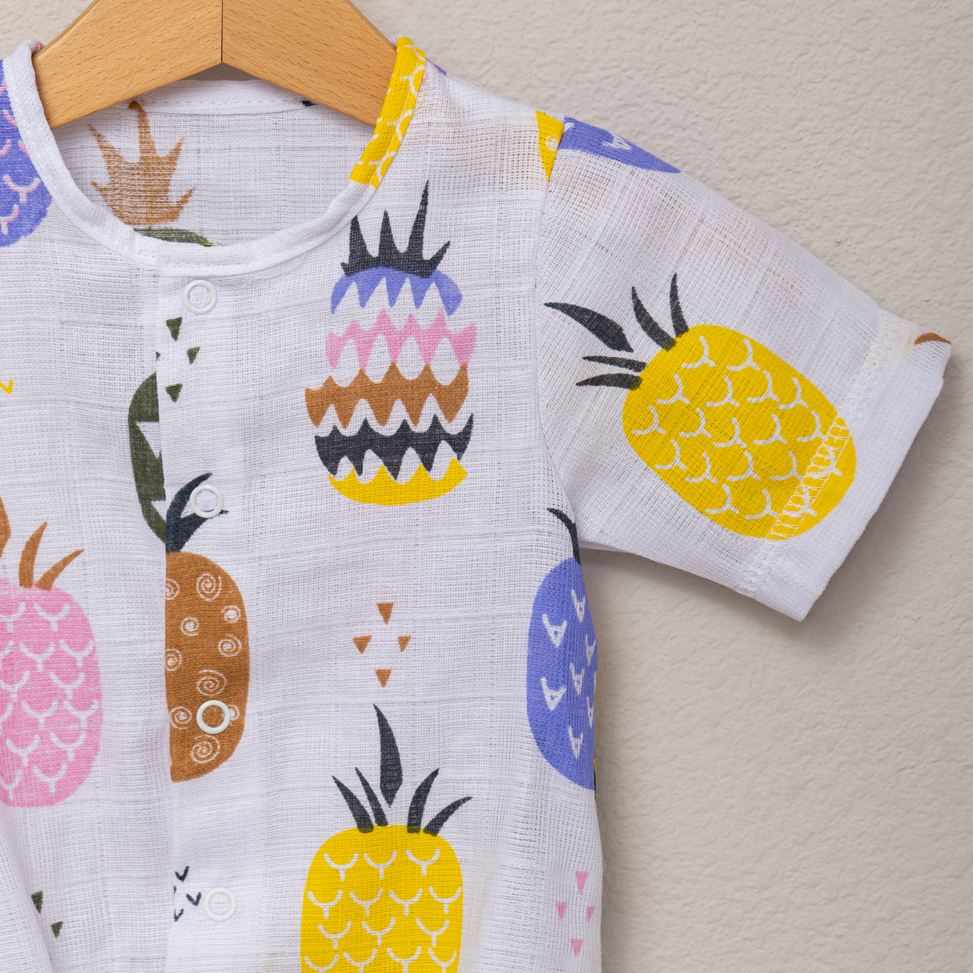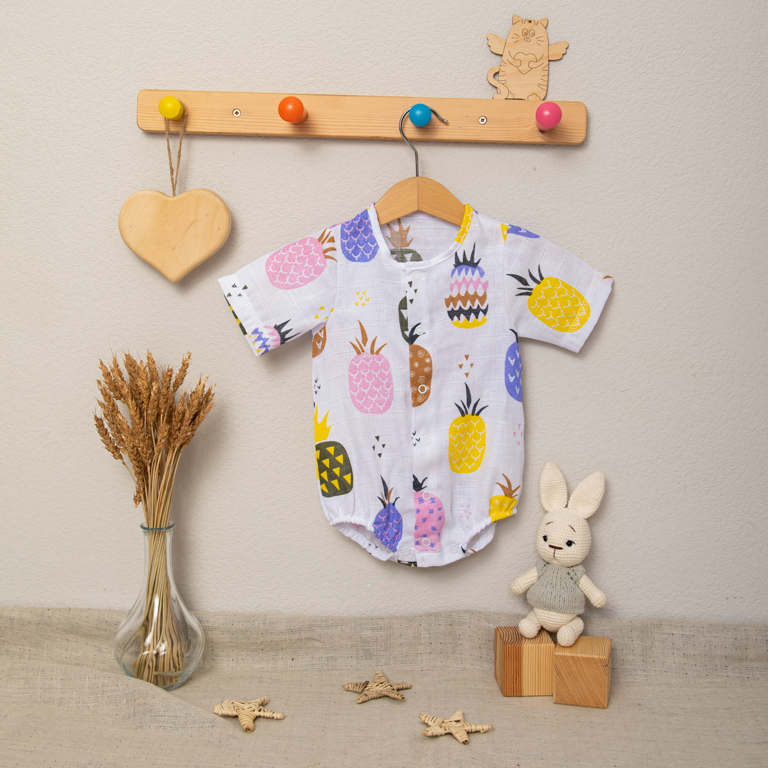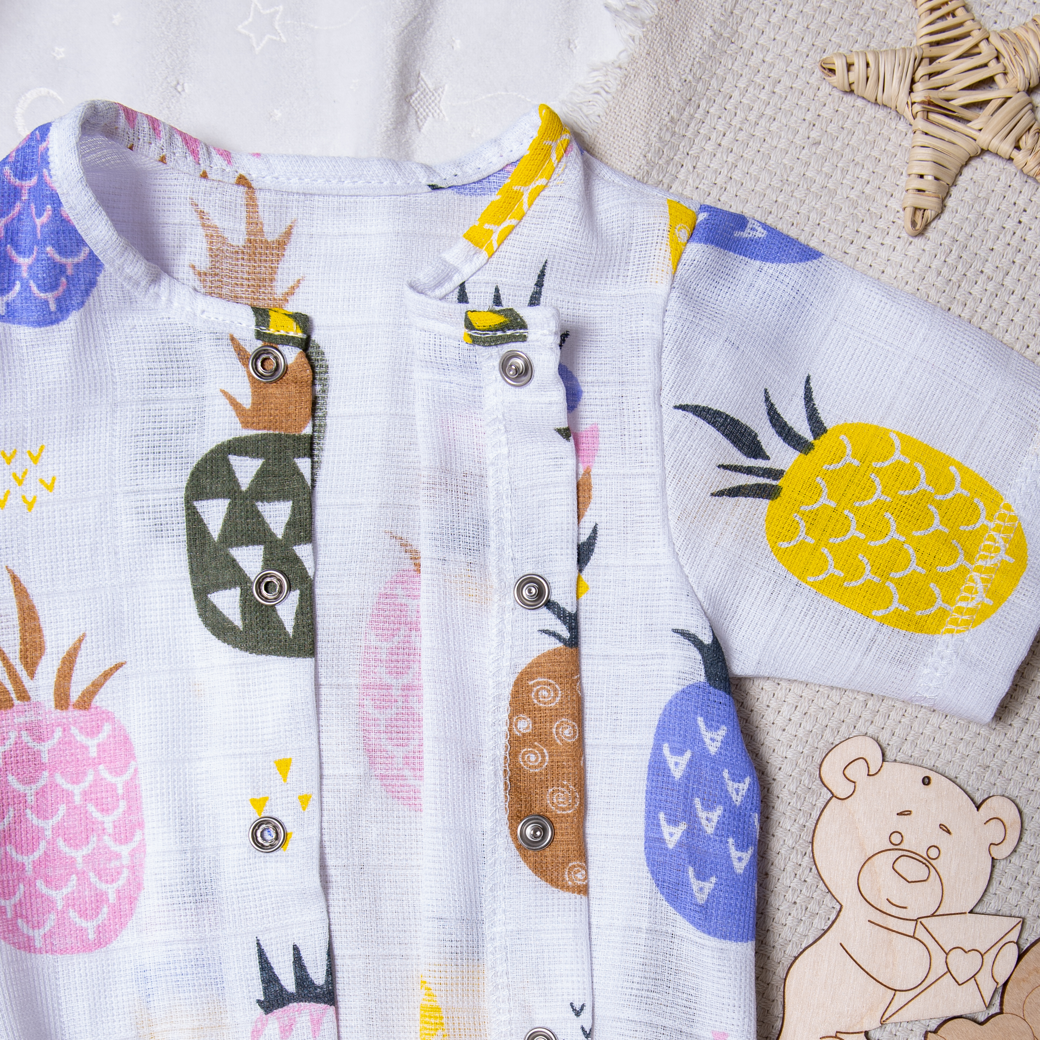 Легкие летние боди из трендового хлопкового муслина с набивным рисунком "Ананасы" .