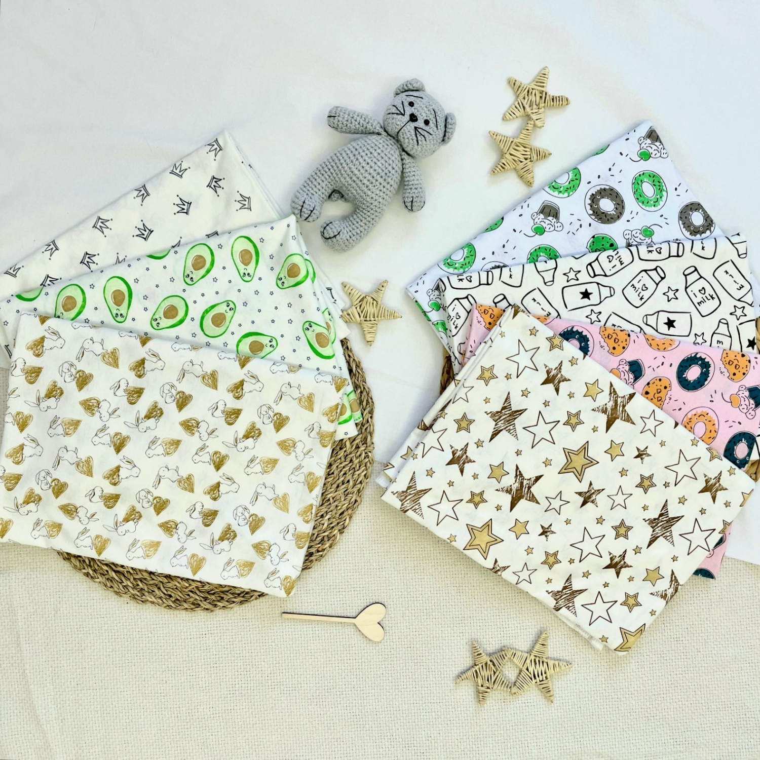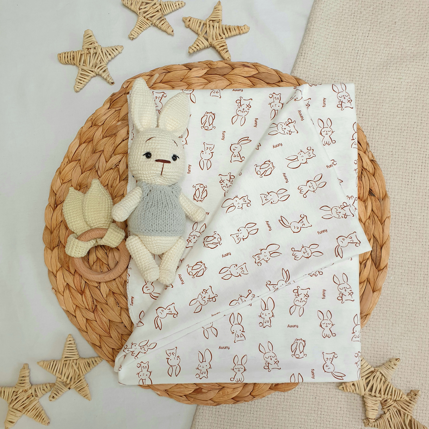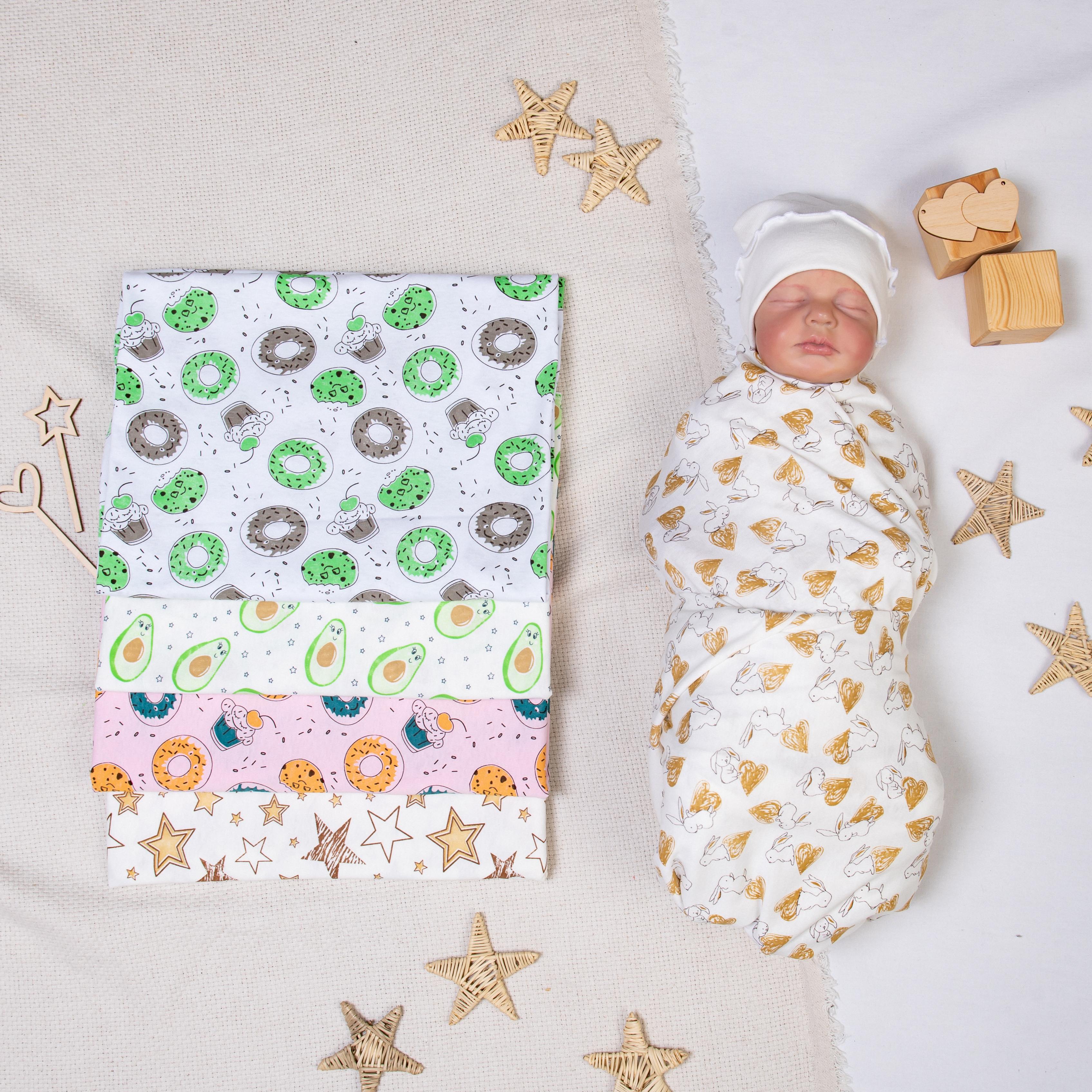 Современная трикотажная пелёнка для новорожденного их хлопкового кулирного трикотажа с красивыми принтами.
