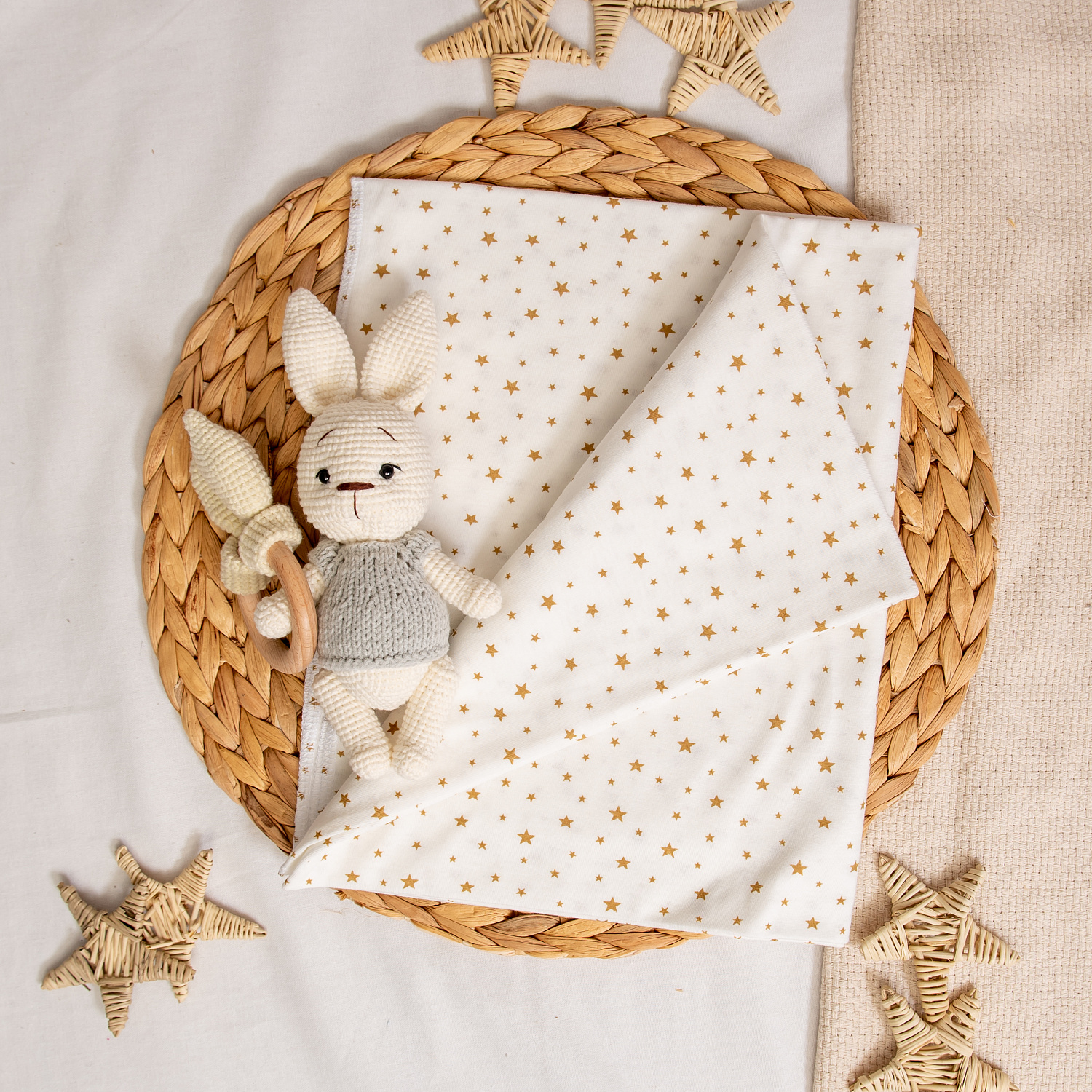 Такая пелёнка очень пластичная, уютно и нежно укутывает малыша. Удобно использовать также как лёгкое покрывало или простынку.