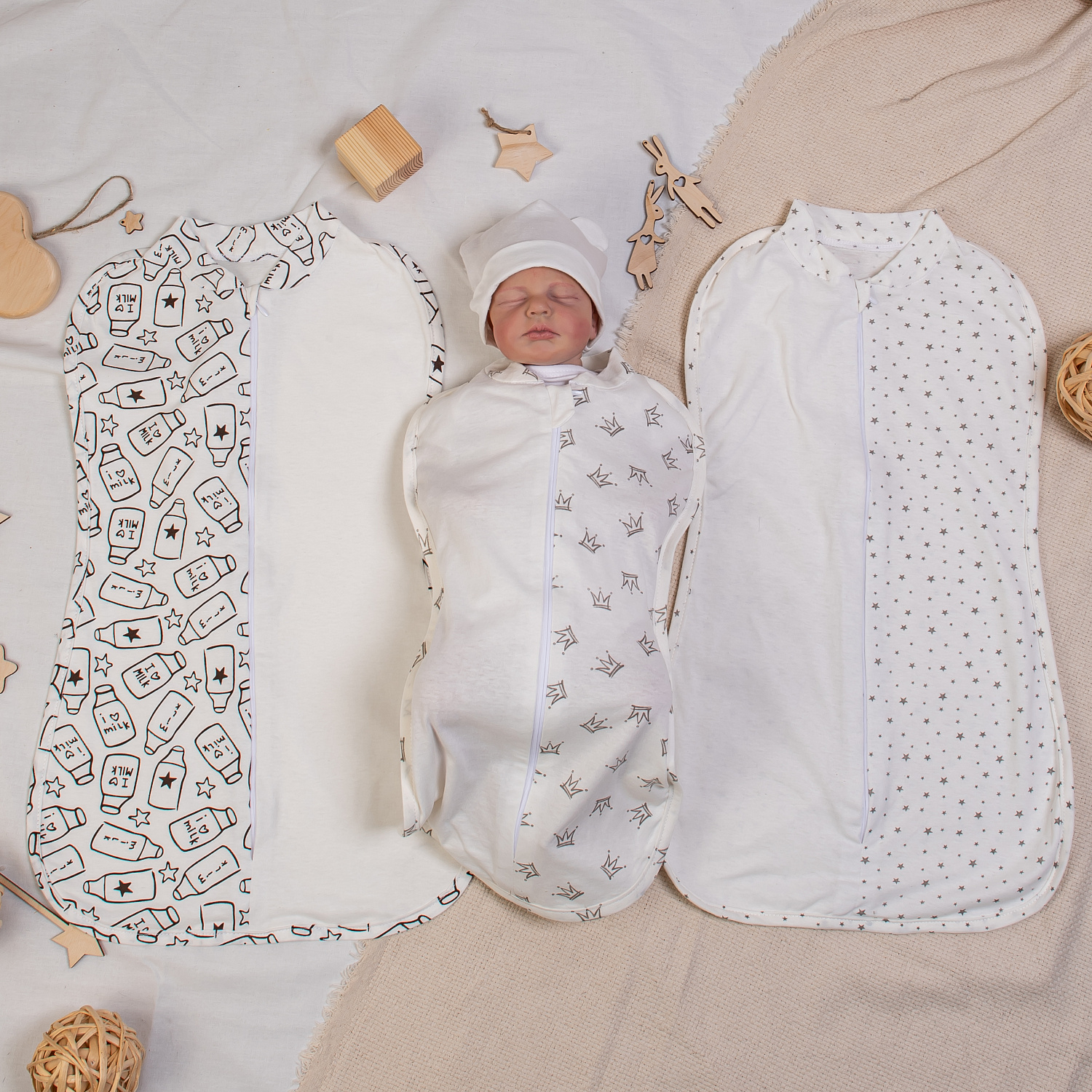 Пелёнка-кокон из хлопкового кулирного трикотажа однотонного молочного цвета и принтованого. На выбор несколько расцветок.