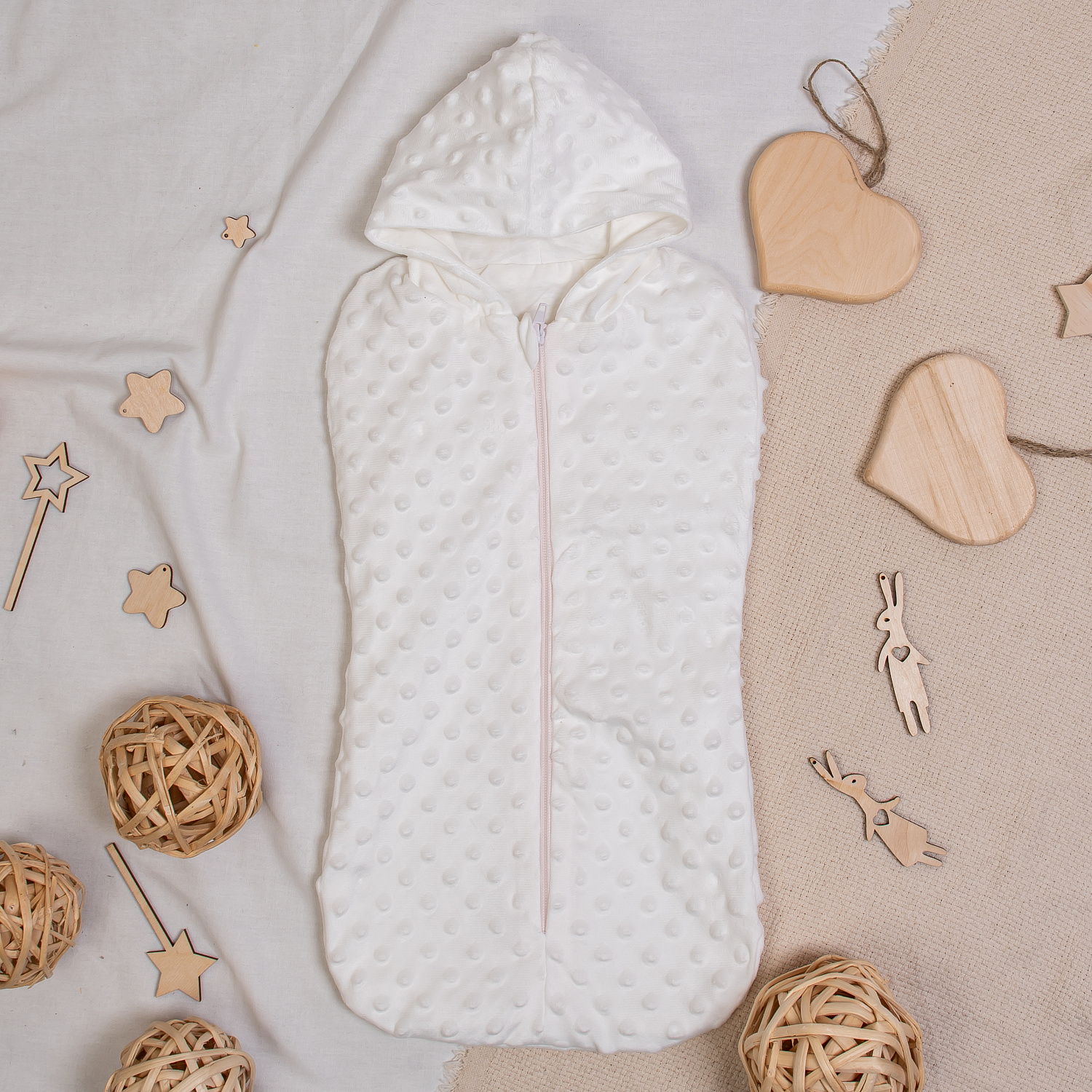 Арт.0322 Кокон-пелёнка с капюшоном молочный