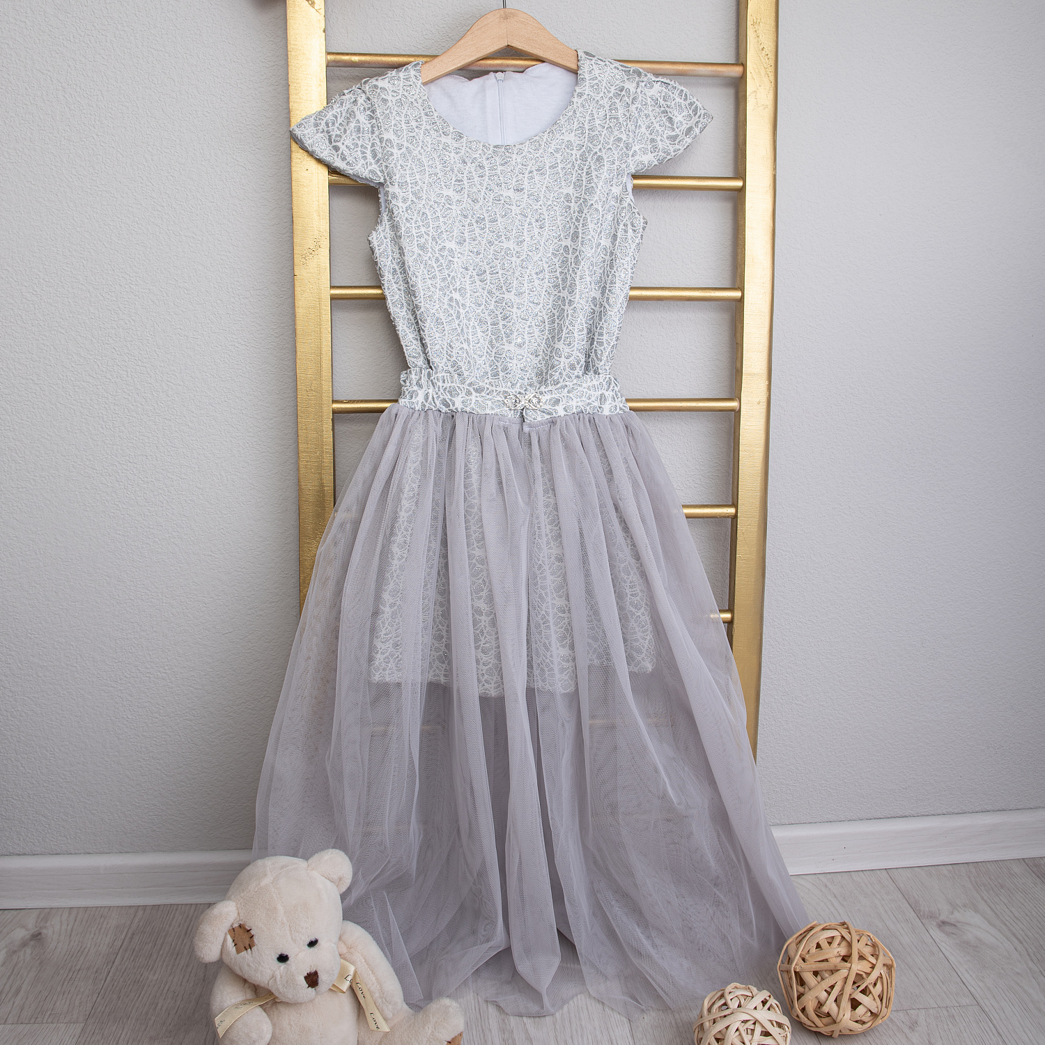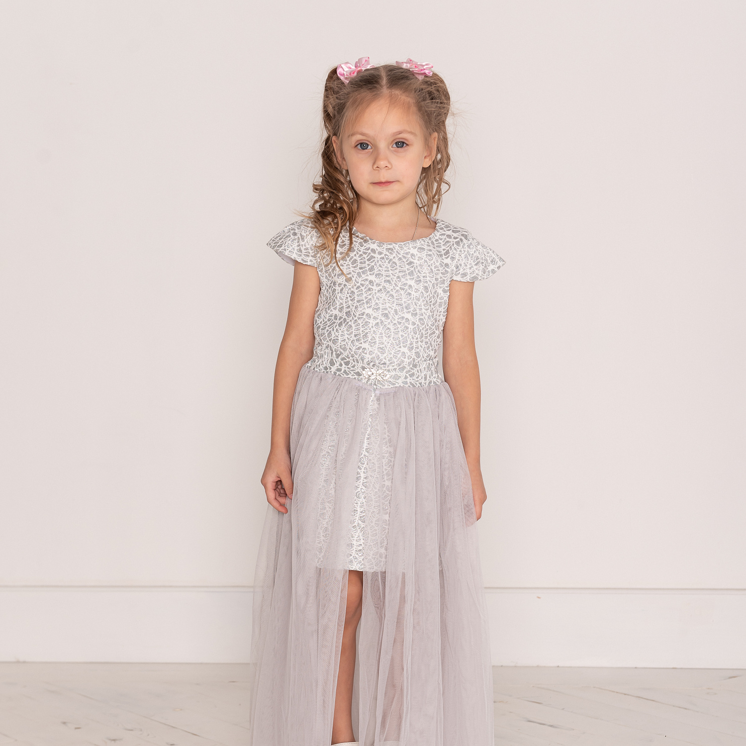 №0838 Платье для девочки "Одри", серебро