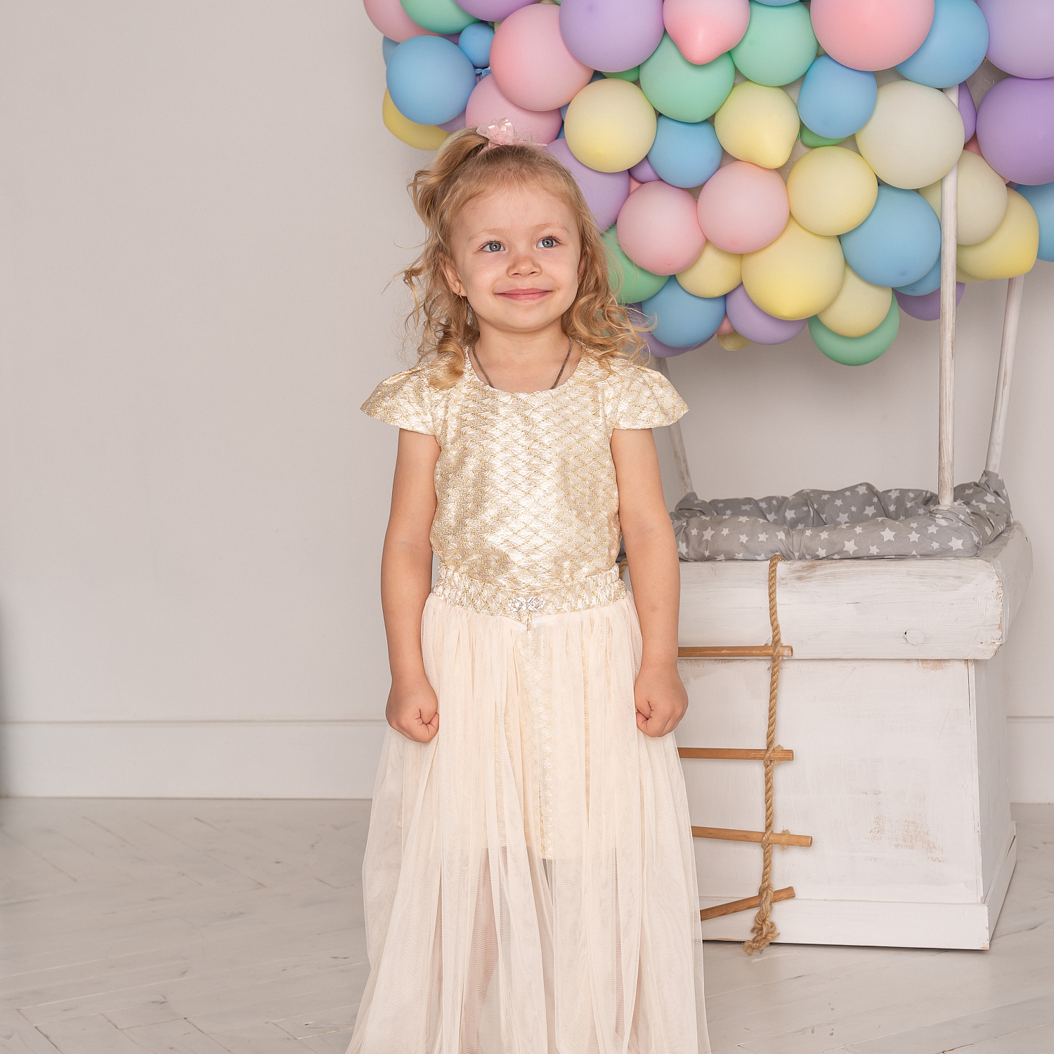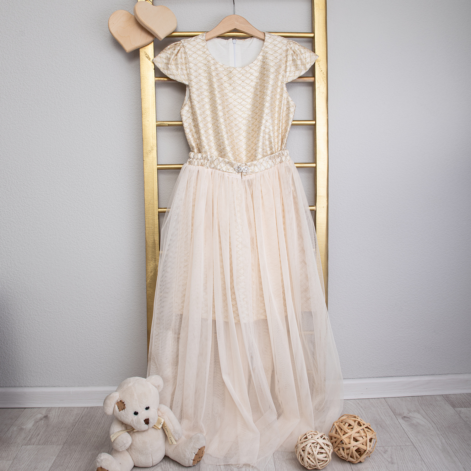 Шикарное платье золотистого цвета, интересная модель для торжественного мероприятия, ваша принцесса будет неотразима.