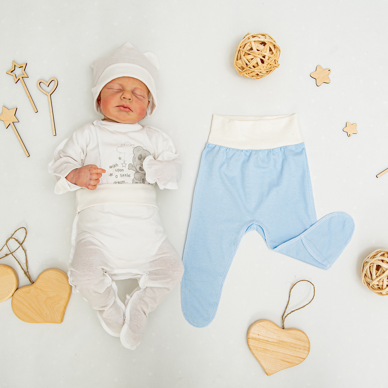 Однотонные расцветки позволяют легко комбинировать ползунки с другими вещами из наших коллекций.