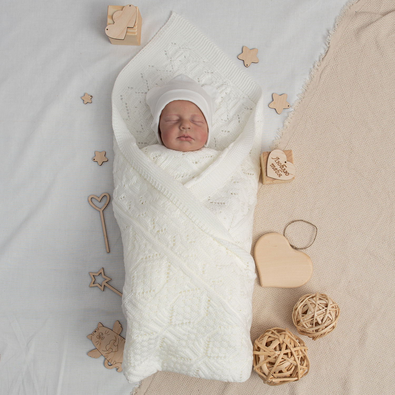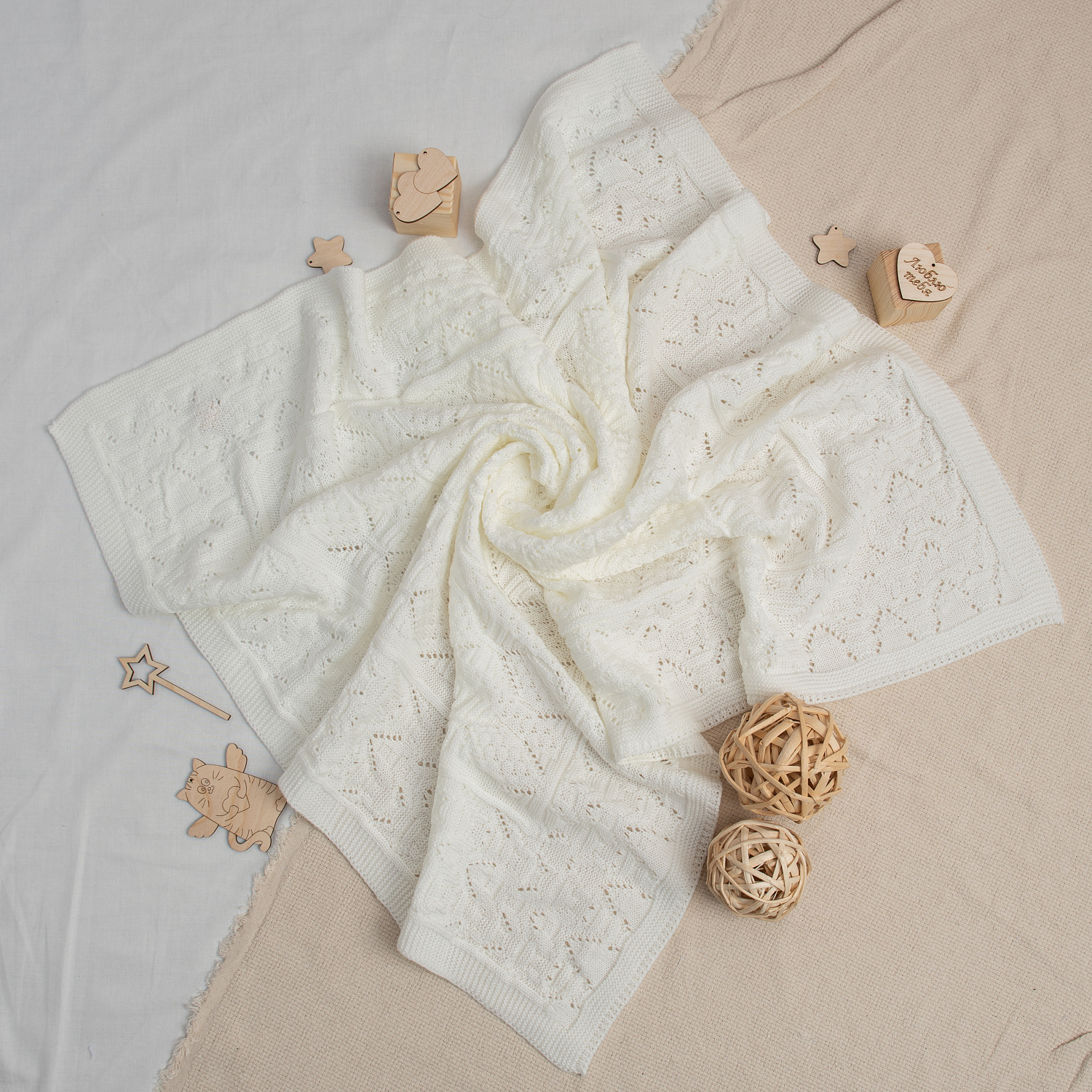 Плед детский вязаный арт.ПВ-30 молочный