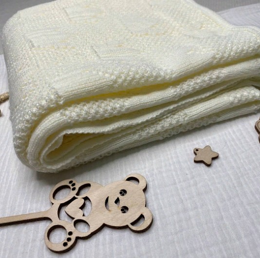 Детский вязаный плед подойдет на летнюю выписку, в качестве подарка малышу и как утепляющий слой в холодное время года..