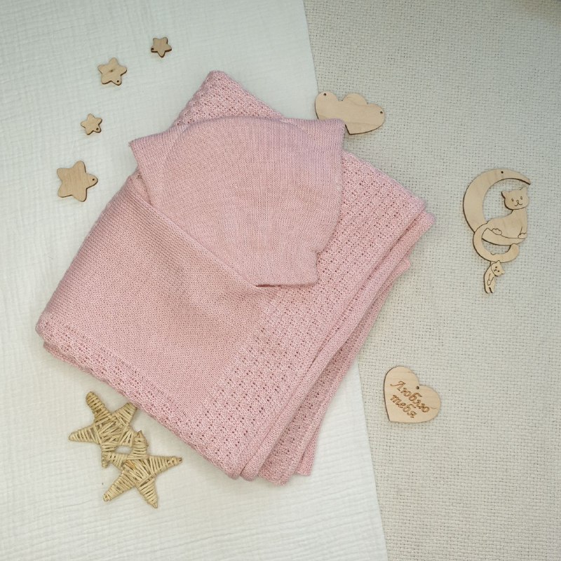 Новинка !ПВ-32 Плед детский с шапкой "Кармашек", вязаный.