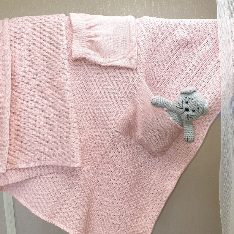 ПВ-32 Плед детский с шапкой "Кармашек", вязаный.
