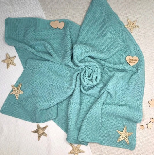 Детский вязаный плед подойдет на летнюю выписку, в качестве подарка малышу и как утепляющий слой в холодное время года..