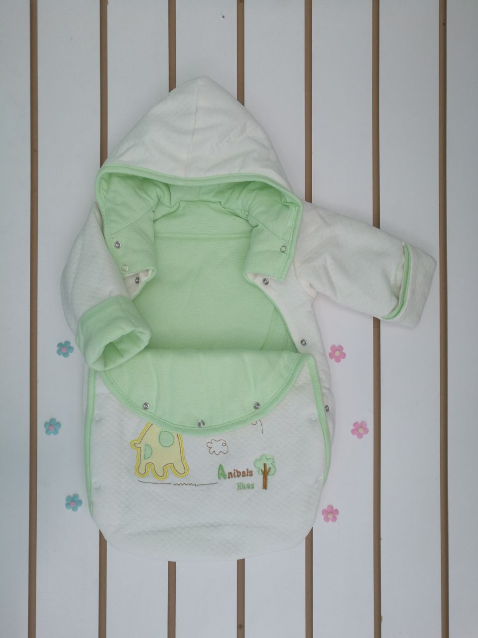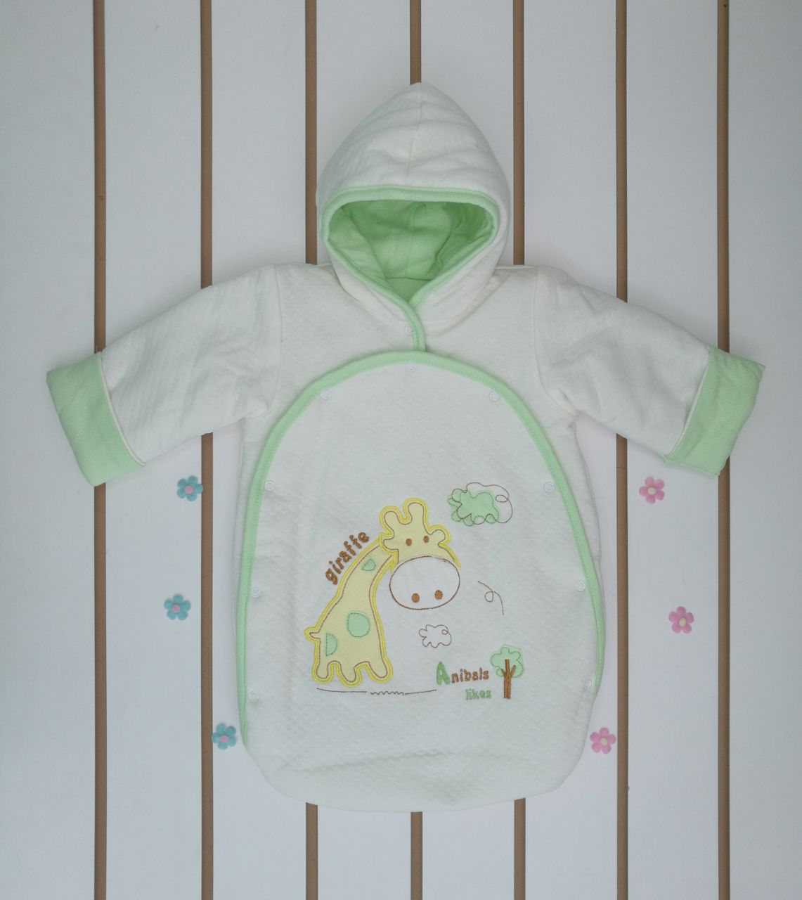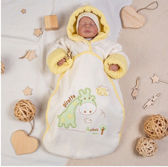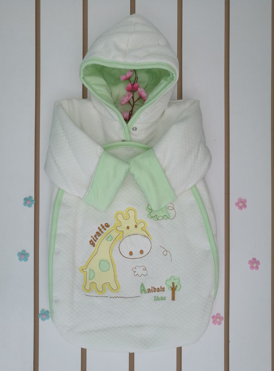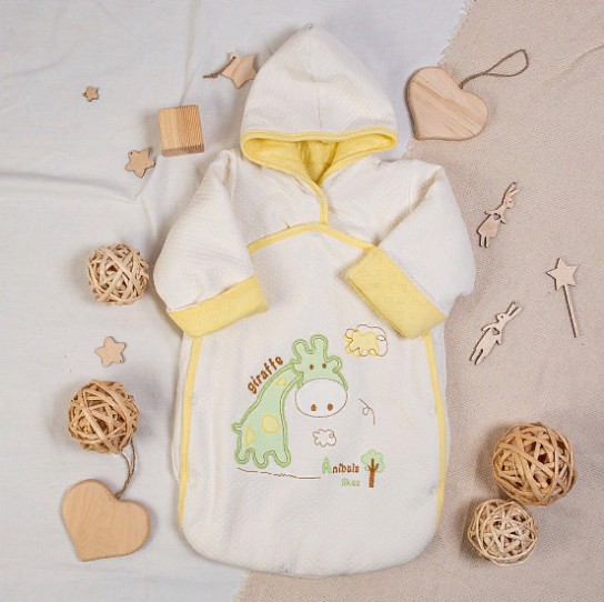 арт.№11-142 Конверт прогулочный "Giraffe" с вышивкой на кнопках ткань капитоний, кулирка, холстон.