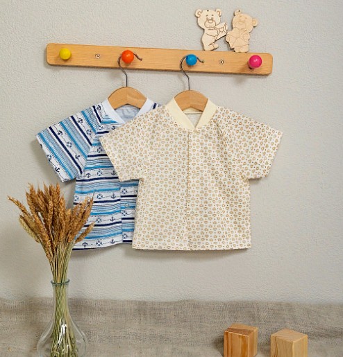 арт.№Ф-54 Кофта-реглан с коротким рукавом, на кнопках ткань кулирка-100% хлопок, р-ры на рост 68,80,86.