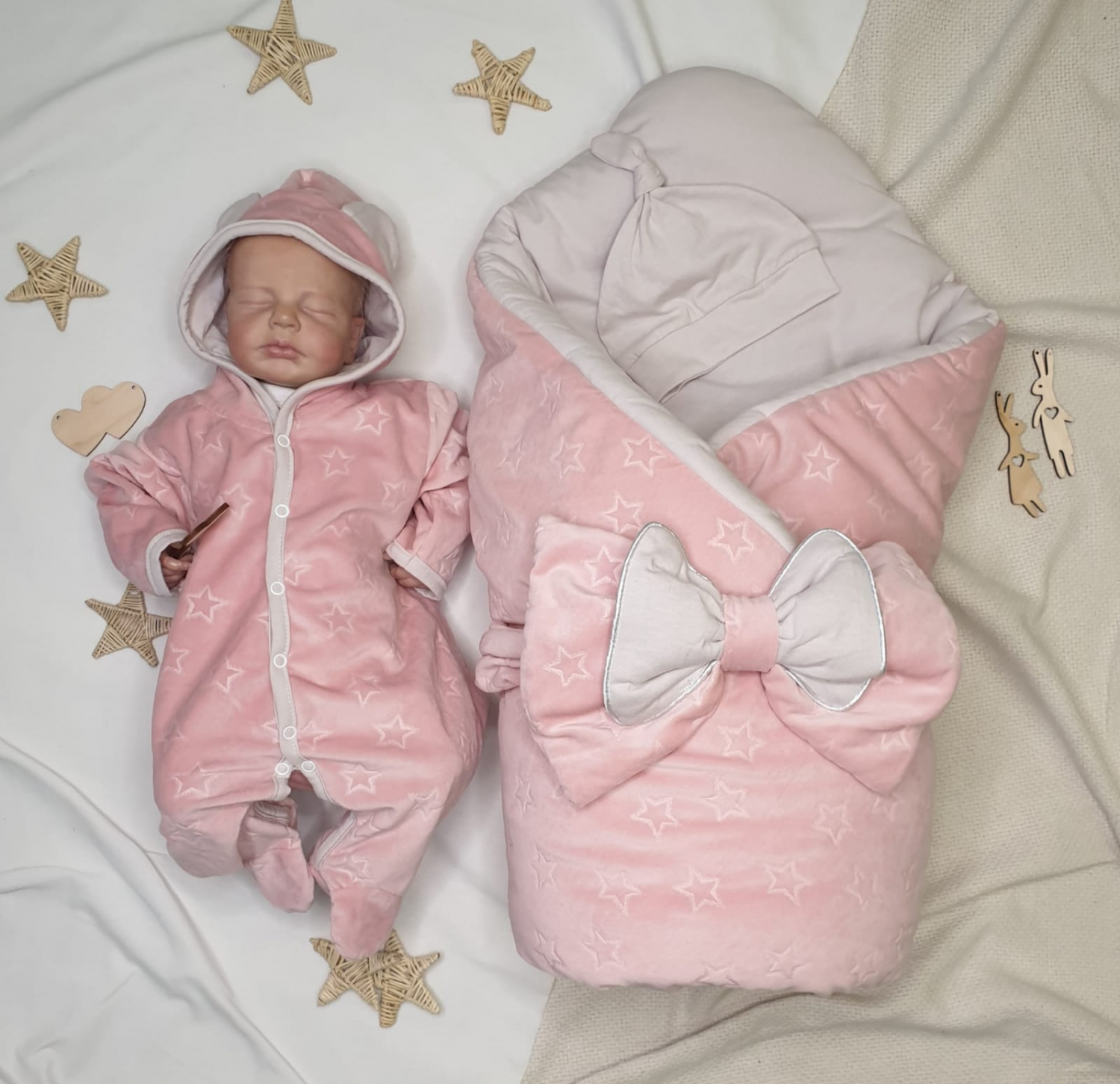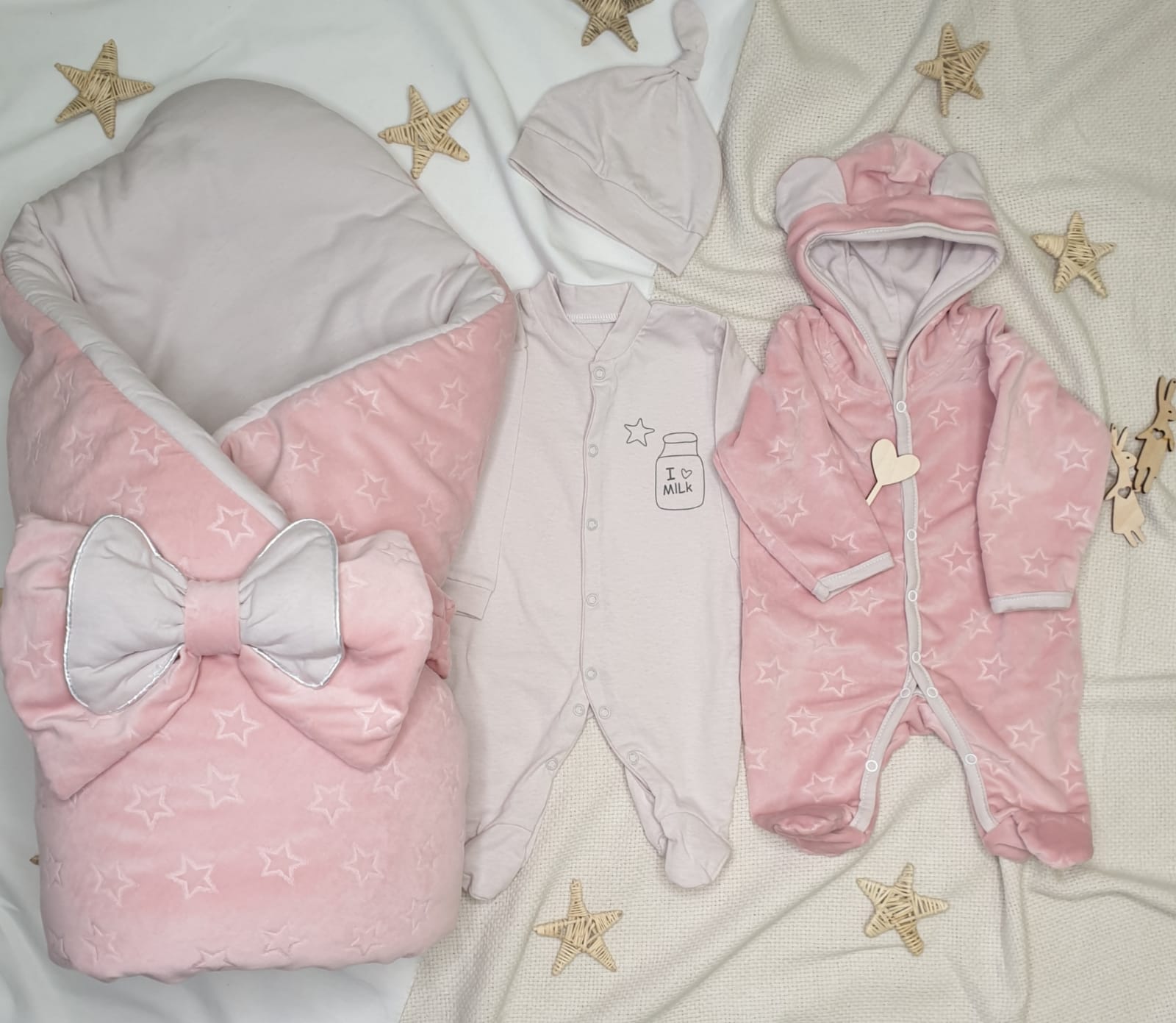 Очень мягкий, шикарный комплект на выписку из роддома для новорожденных.