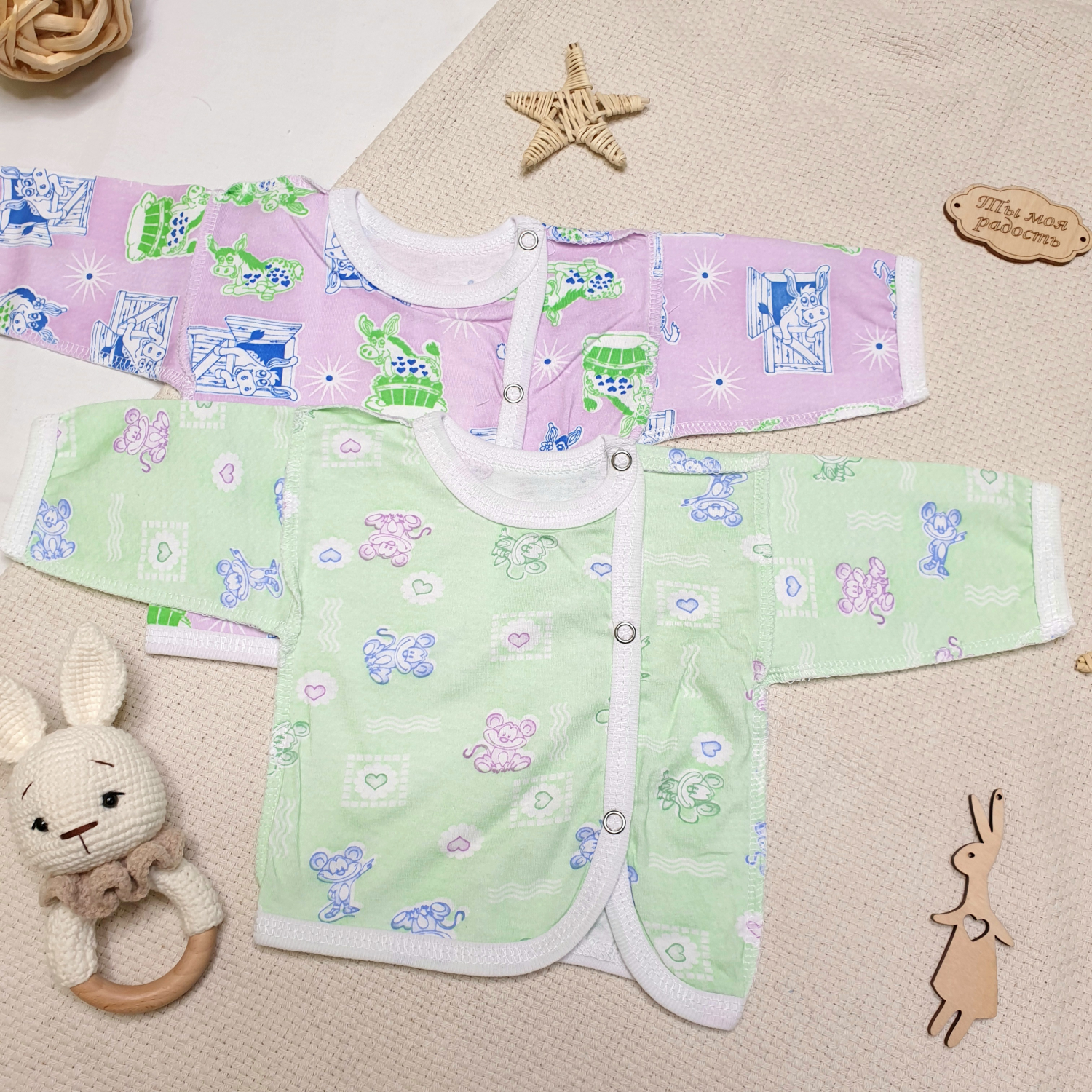 Детская распашонка из веселой кулирки, застежка на кнопках,