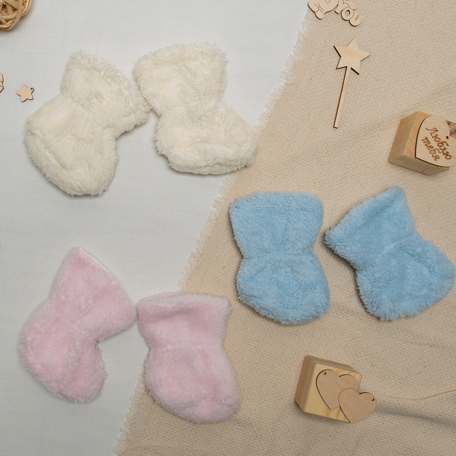арт.№087 Пинетки из мерлушки на подкладе из кулирки, цвета голубой, молочный, розовый.